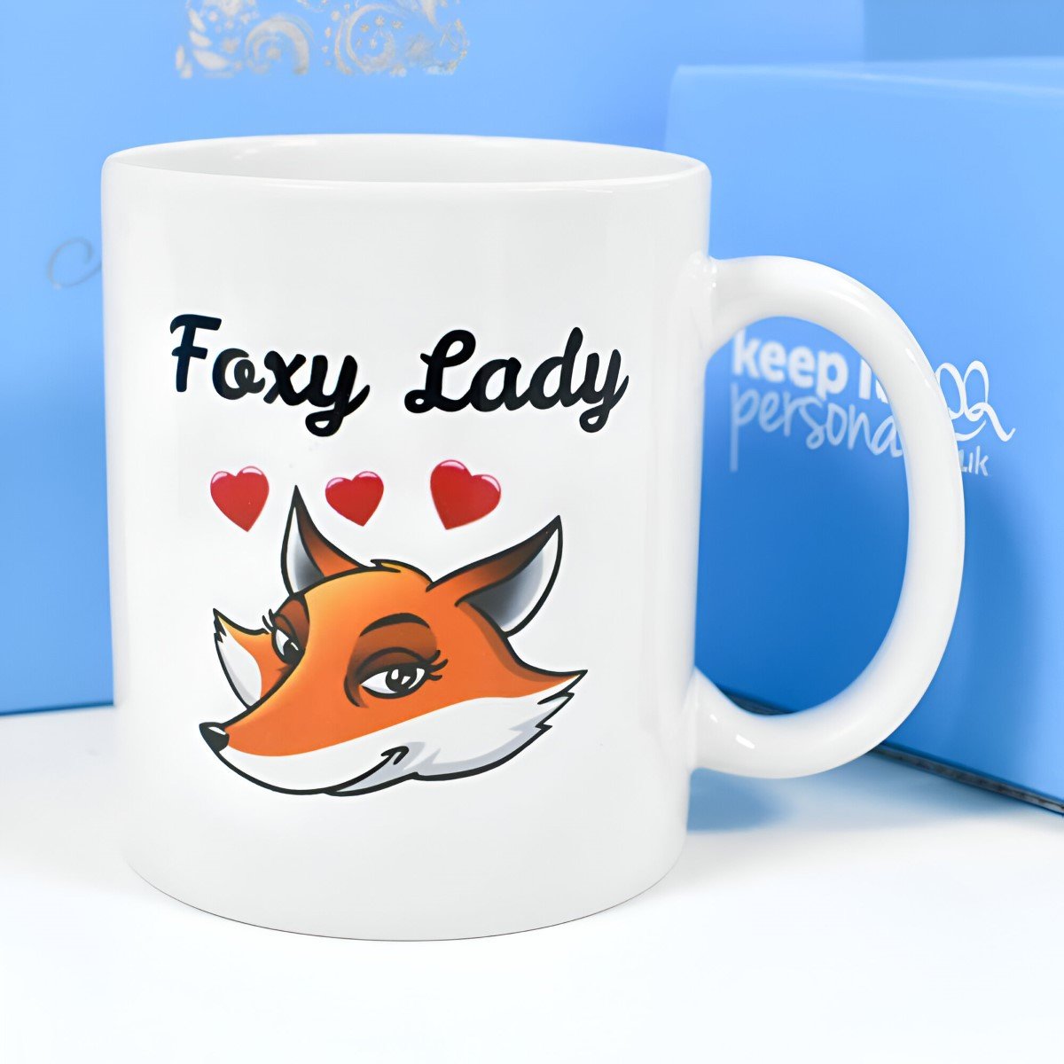 Start your day the right way with this fantastic personalised Foxy Lady mug.
