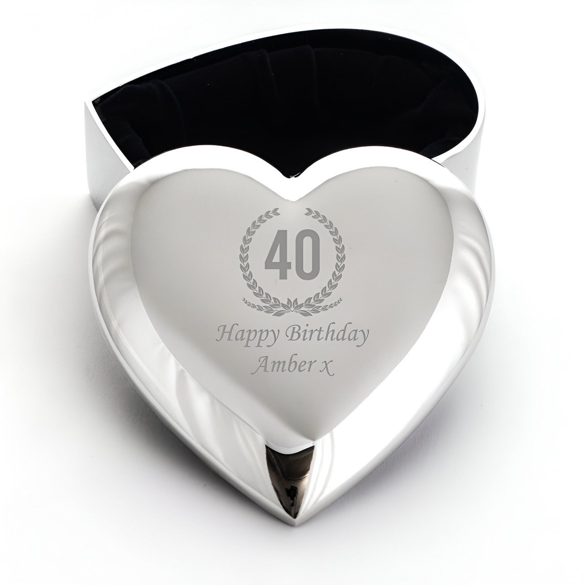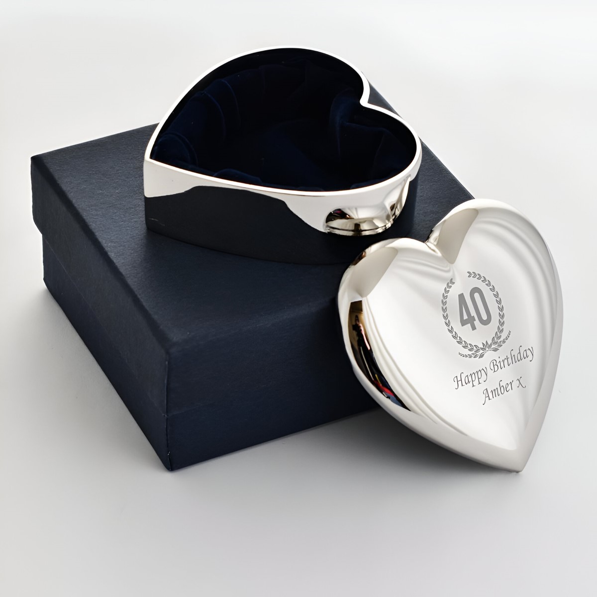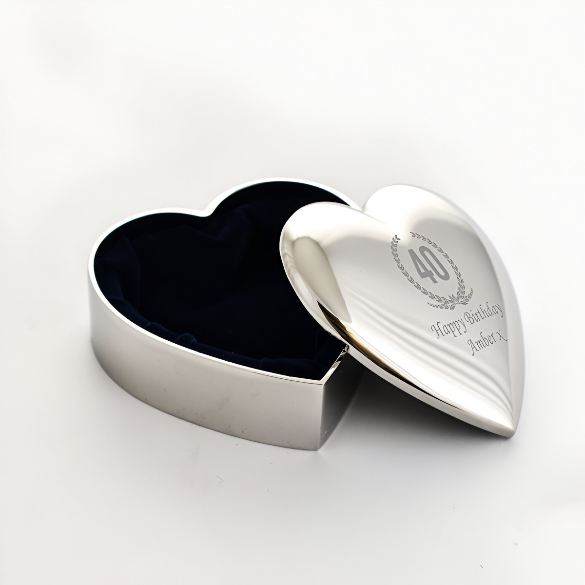 Our Silver Heart Trinket is a beautiful keepsake and a thoughtful 40th birthday gift that can be personalised with any name and a short message.