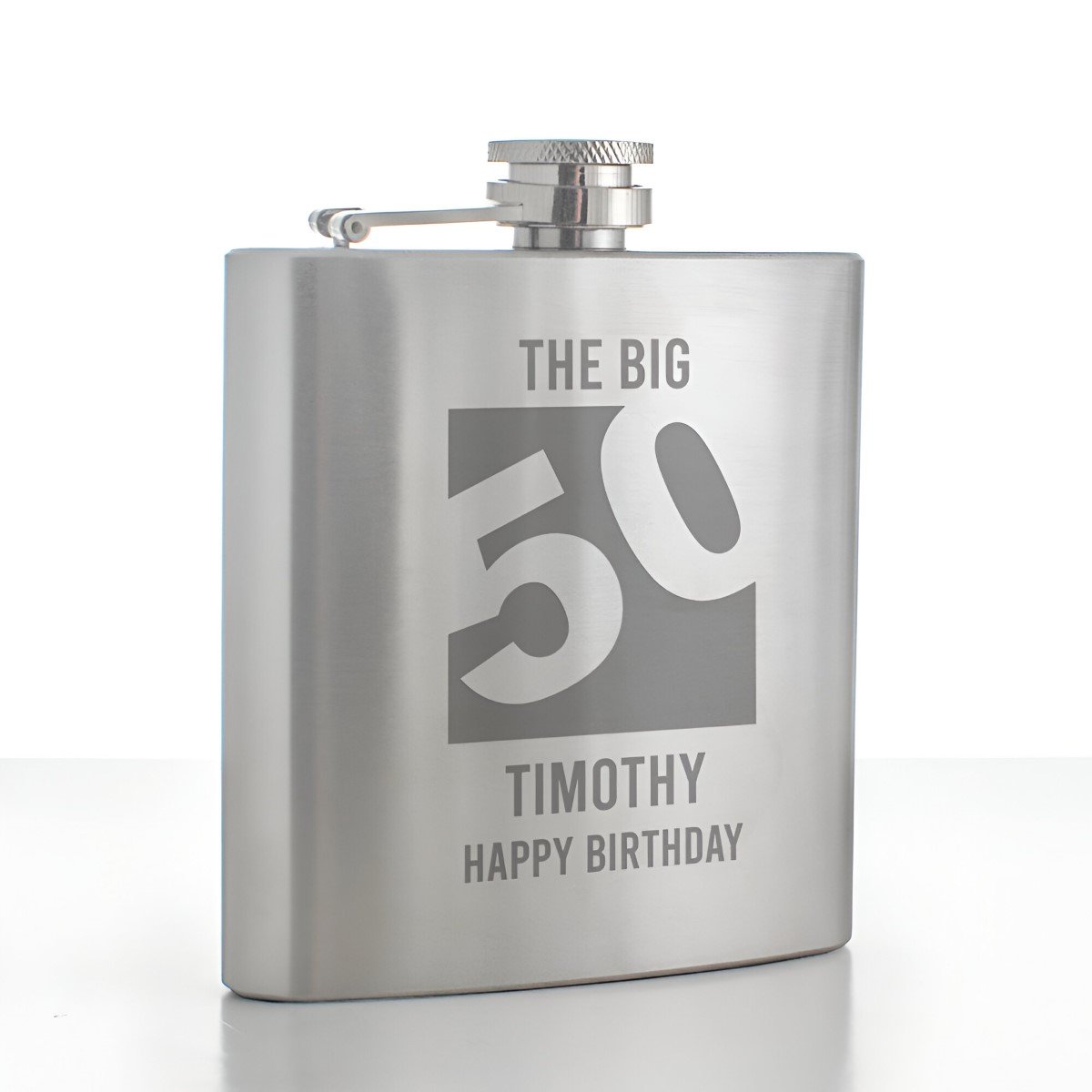This personalised hip flask is a gift for friends or family celebrating their 50th birthday. Add any name or message to create something truly unique to mark the occasion.