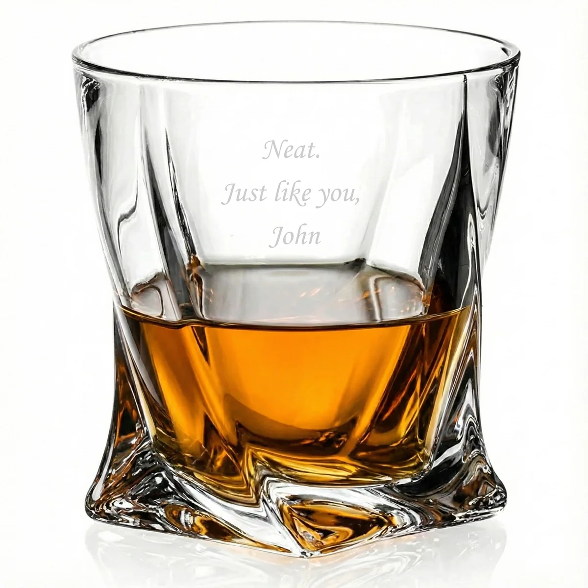 The smooth, spiraling face of the Quadro offers a unique backdrop for your message. We can engrave a name, date, or dedication (up to 5 lines) directly onto the glass. The twisted profile adds a dynamic 3D effect to your text, ensuring your gift stands out as truly one-of-a-kind.