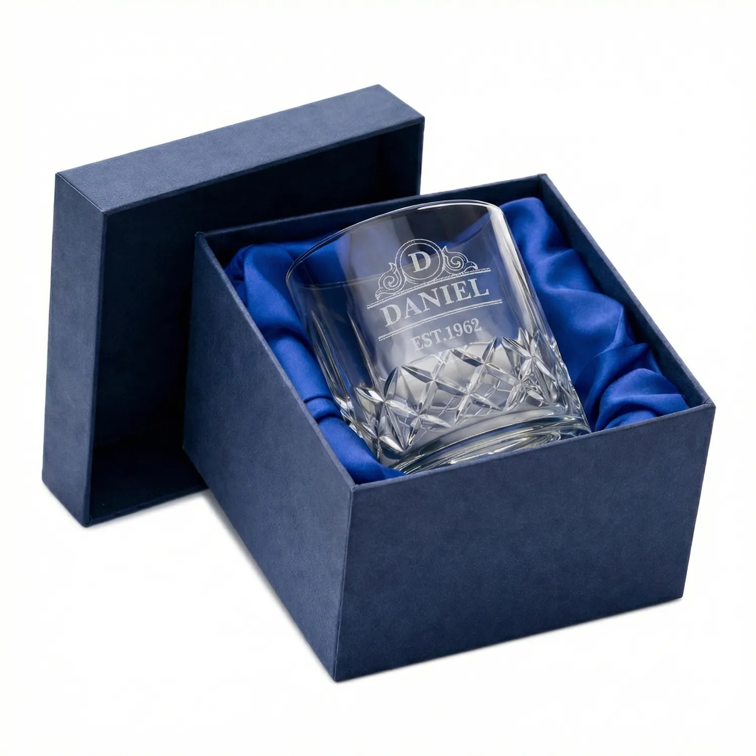 This engraved crystal whiskey glass is perfect for birthdays and weddings and can be personalised with any initial, name and message you choose.