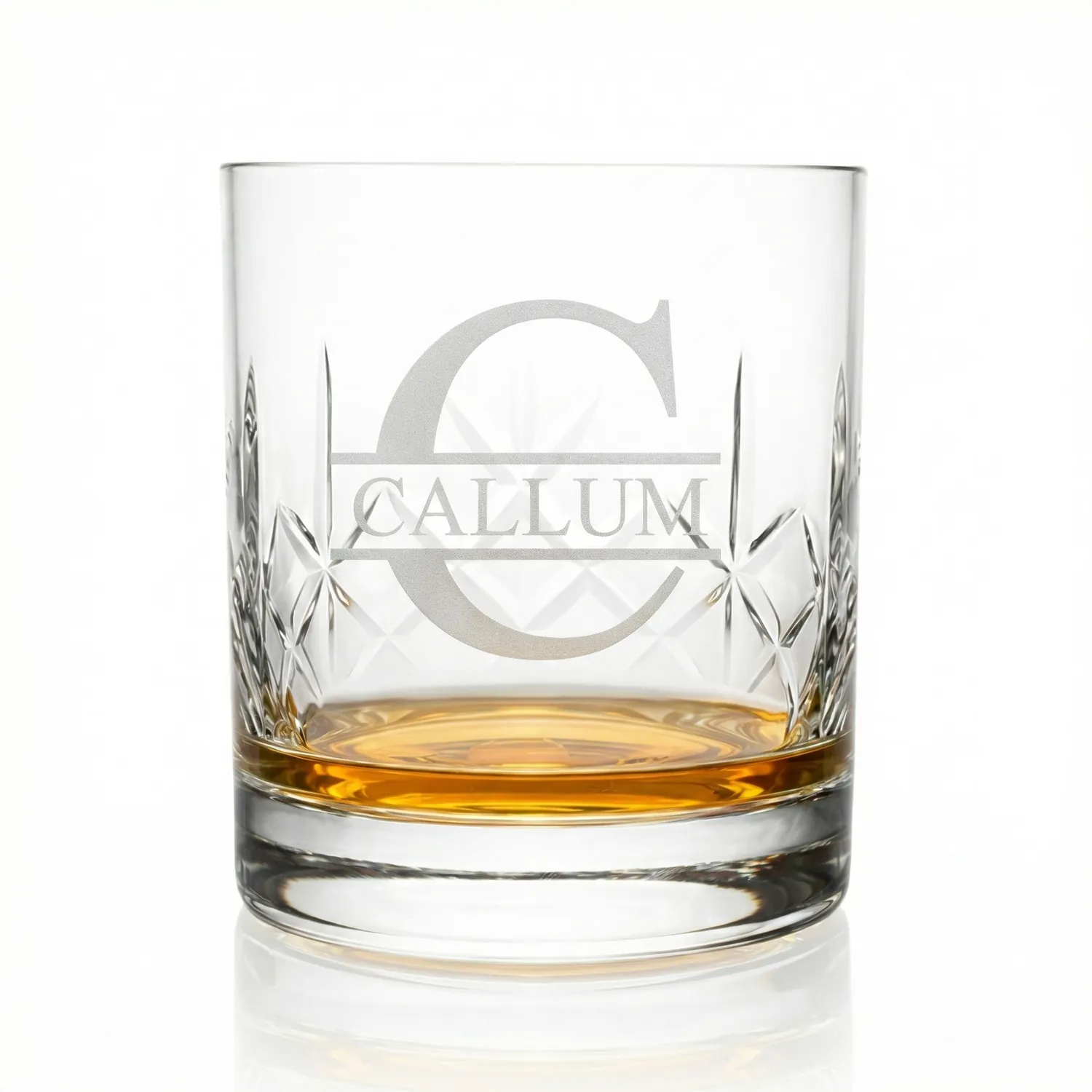 Our crystal whisky glass has a beautiful cut design wrapped around the glass with a clear panel where your engraving will be placed.