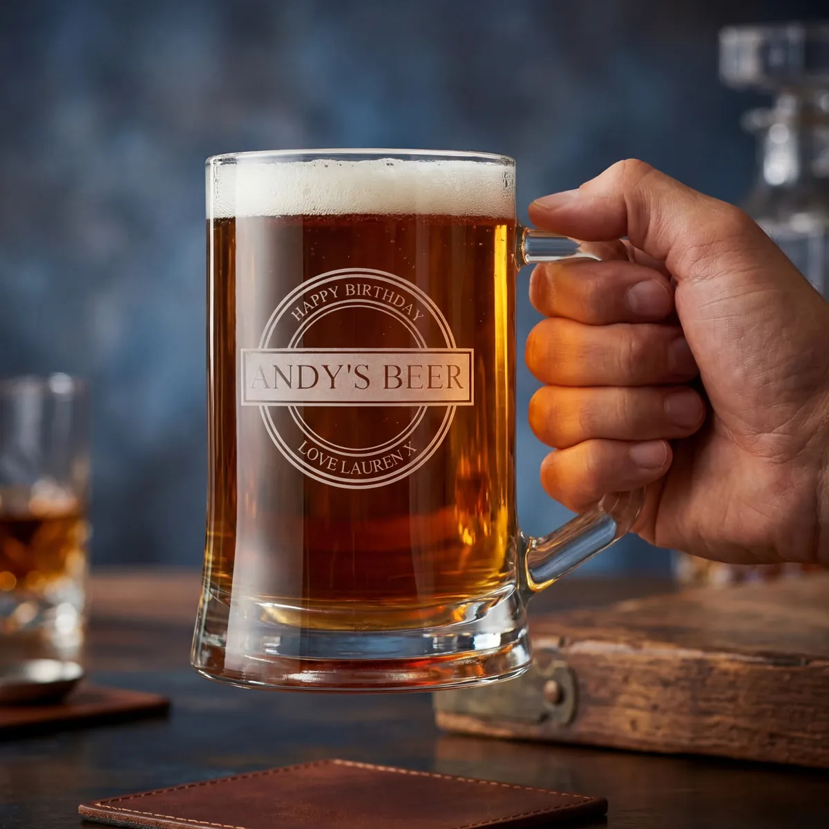 All you need to do is input your recipient's details into the box provided. You can also see what your engraved birthday pint tankard will look like with our live preview feature.