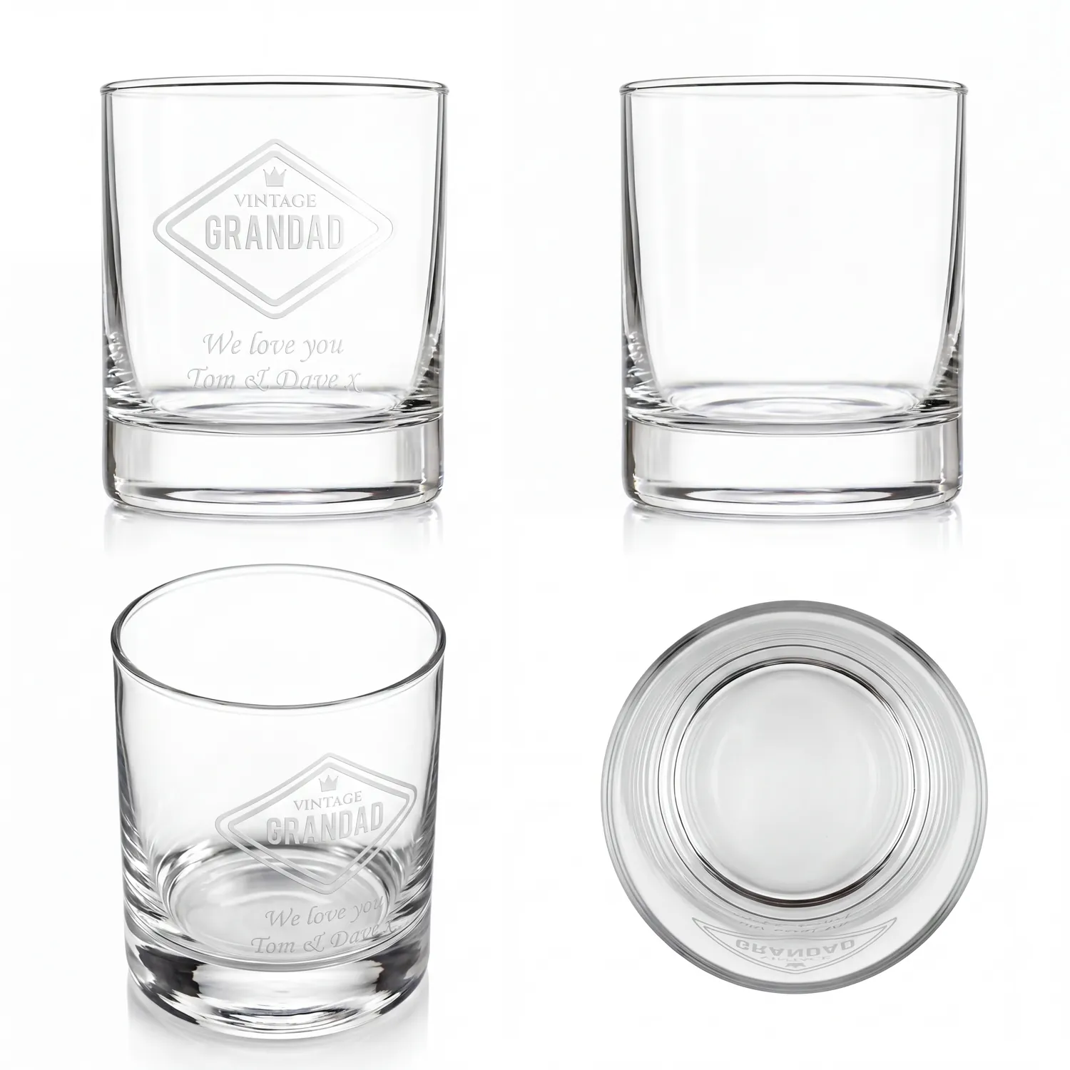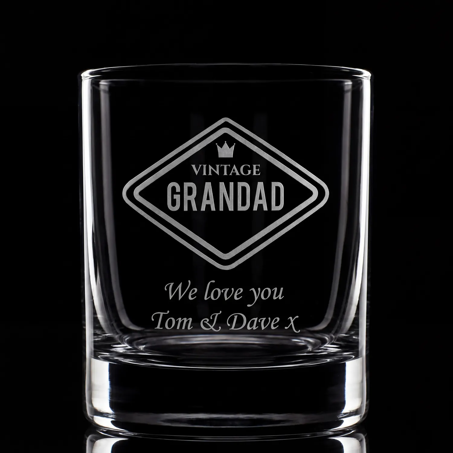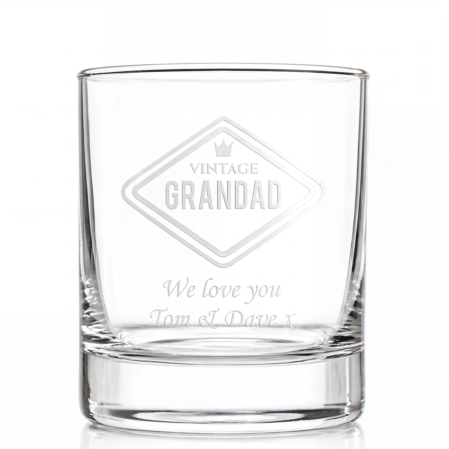 This glass is engraved with our Vintage Grandad design which really stands out when poured with your favourite spirit. This is a robust classic tumbler glass that will stand the test of time and make a fantastic gift for Grandad.