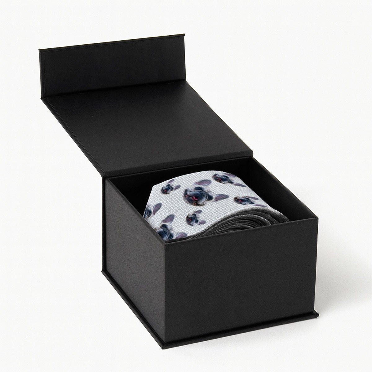 Add a personalised touch to your wardrobe with our Photo Upload Pet Face Cutout White Silk Tie. Made from soft silky fabric, this novelty tie is perfect for pet lovers who want to showcase their furry friends in a unique and stylish way. Simply upload a photo of your pet, and we’ll custom print their adorable face in a cutout design on this elegant white silk tie.
