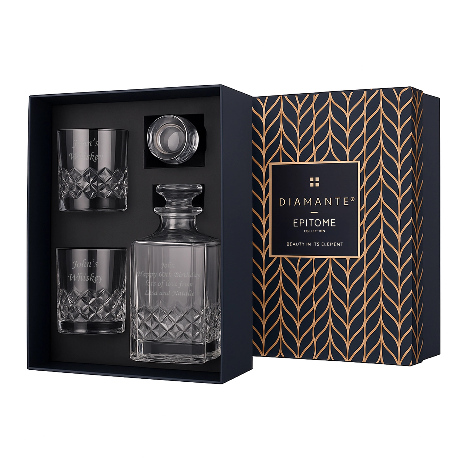 Our brand new Grosvenor decanter set is part of the Diamante range, ensuring this gift is hand-crafted and manufactured to the highest quality.