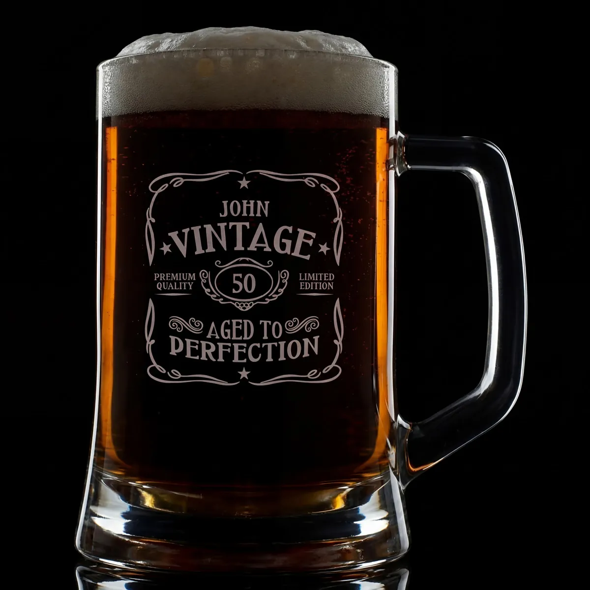 Our 'Vintage Aged To Perfection ' design will be professionally laser engraved on the front. You can personalise this with any name and a date/year of your choice to be engraved in the middle.