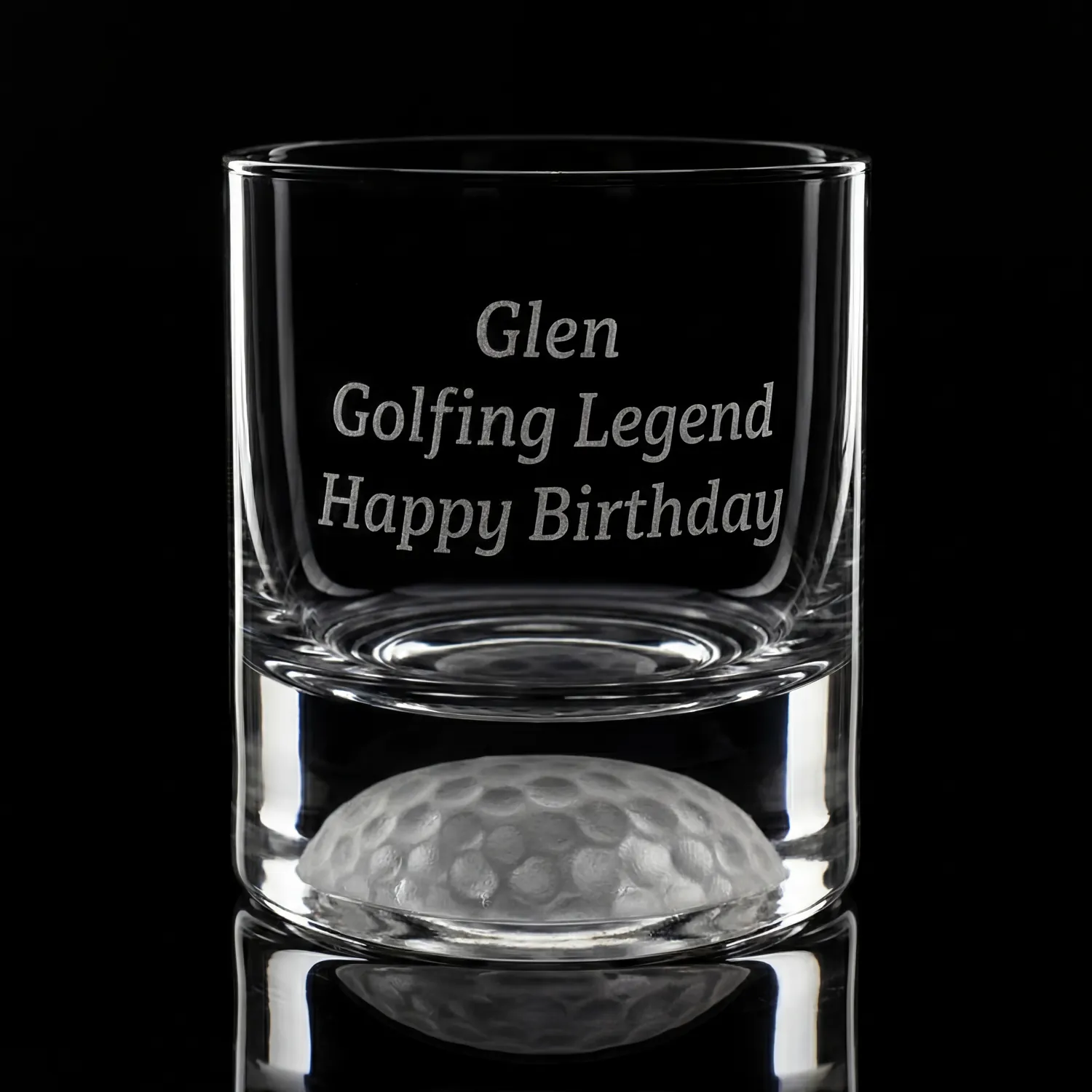This personalised whisky glass is hand-blown and has a golf ball shape moulded into the bottom of the glass.