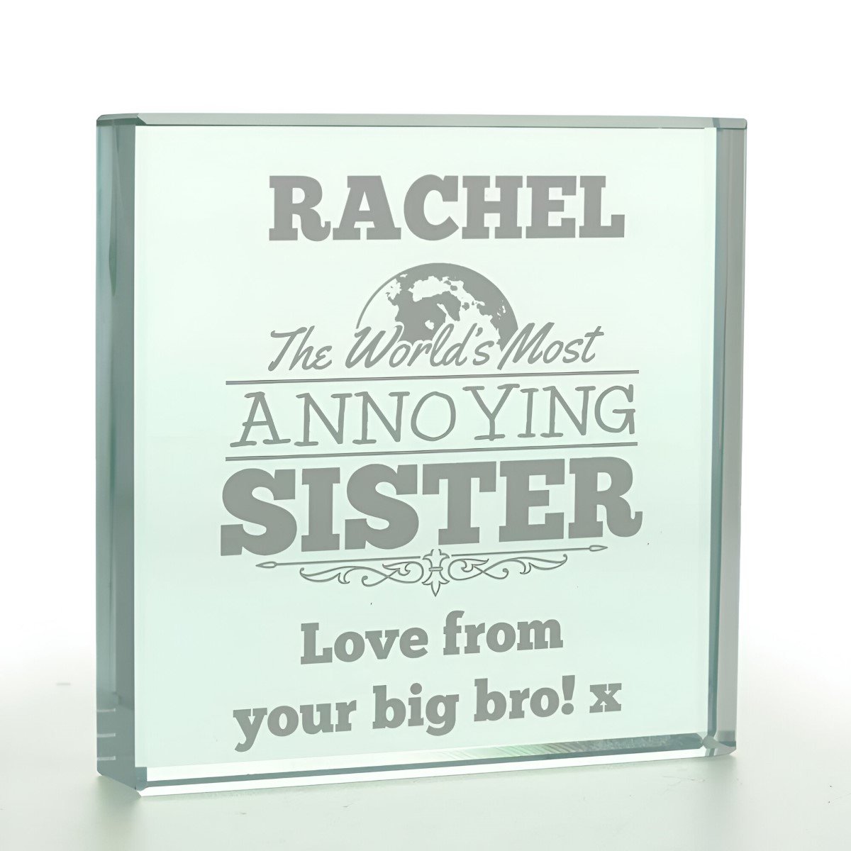 This Personalised World's Most Annoying Sister Glass Token is a lovely yet cheeky gift to give to your sister as a keepsake. Perfect for any occasion, this will definitely put a smile on your sisters face and is a unique and personal gift she will surely hold dear for years to come.