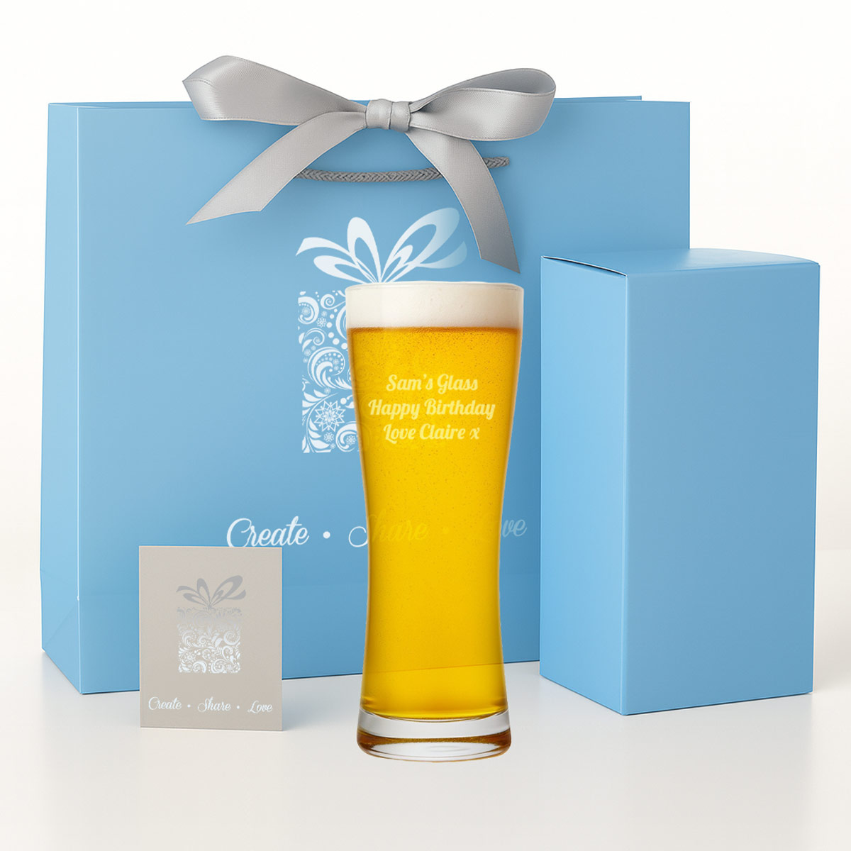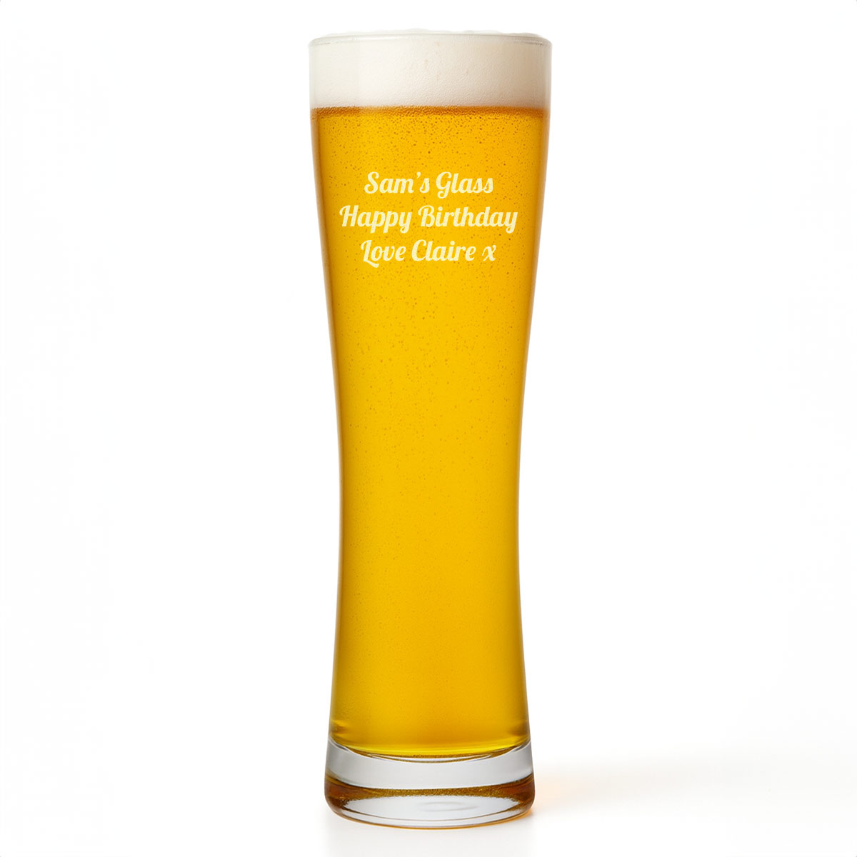 Enjoy your favourite beer as the bubbles race to the top of this charming tall pilsner glass. You can personalise this with any message of your choice making it an ideal gift for many occasions.