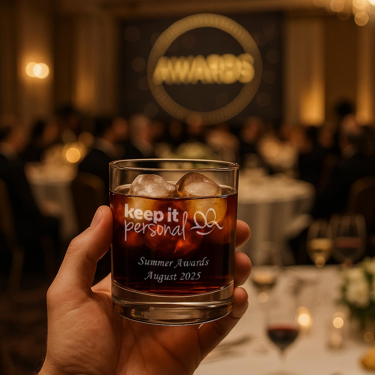 Elevate your brand with personalised whisky glasses engraved with your company logo.