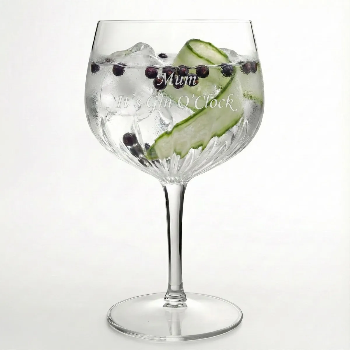 Become the centre of attention with this beautifully Cut Crystal Gin Balloon Glass. Have any message of your choice engraved on this luxurious glass and enjoy your favourite Gin cocktail.