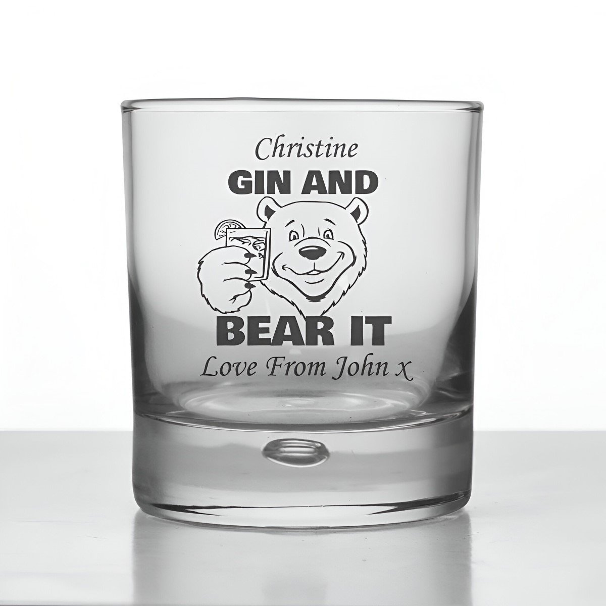 Just Gin and Bear it with this witty and amusing Personalised Glass Tumbler!