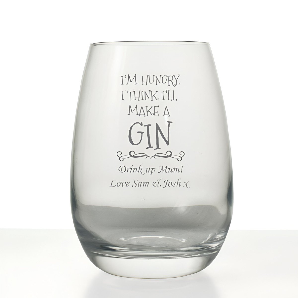 This stunning glass can be personalised with any message of your choice below our fun design. It is crafted by world-renowned glass manufacturer Luigi Bormioli® and is a strong, reliable vessel perfect for all your gin needs.