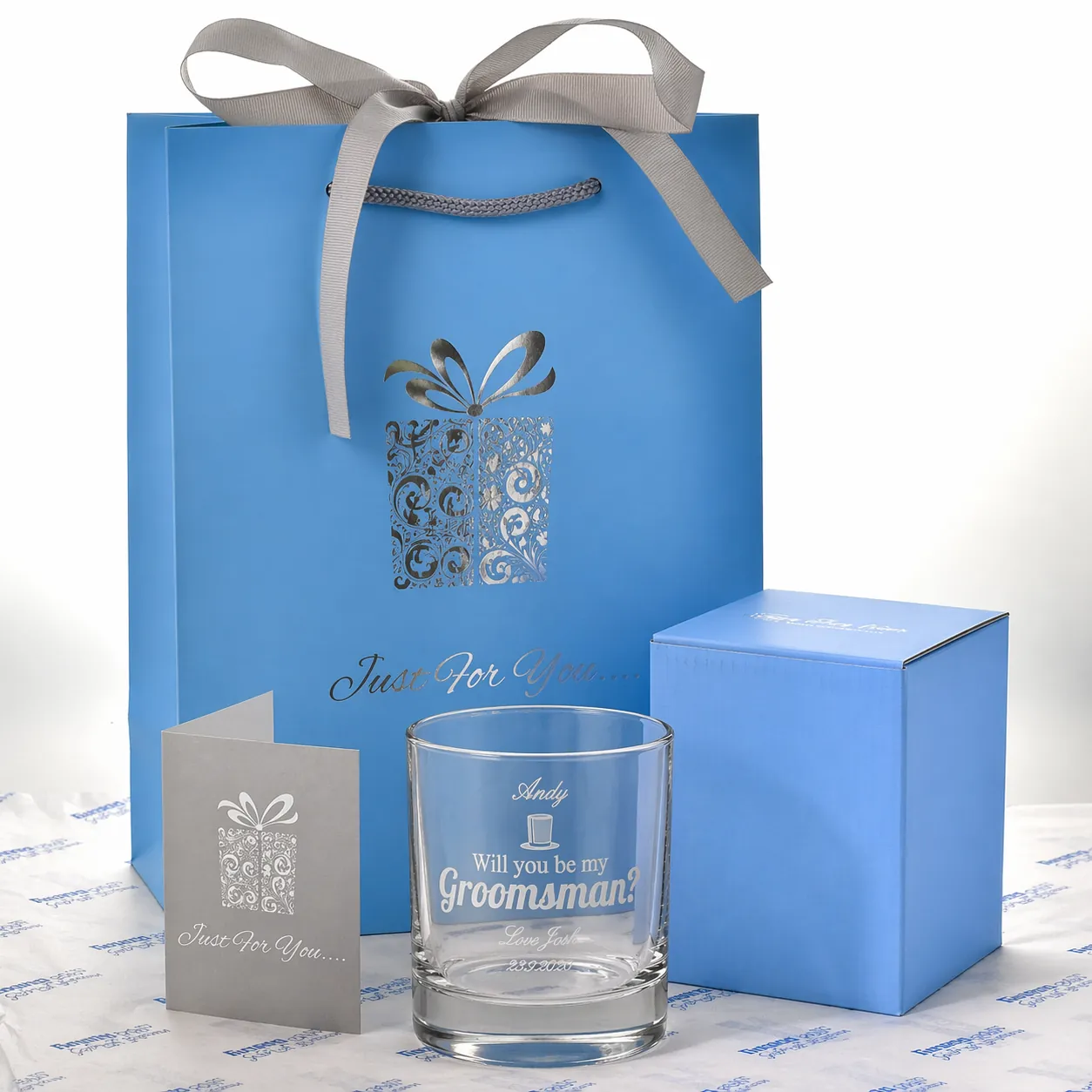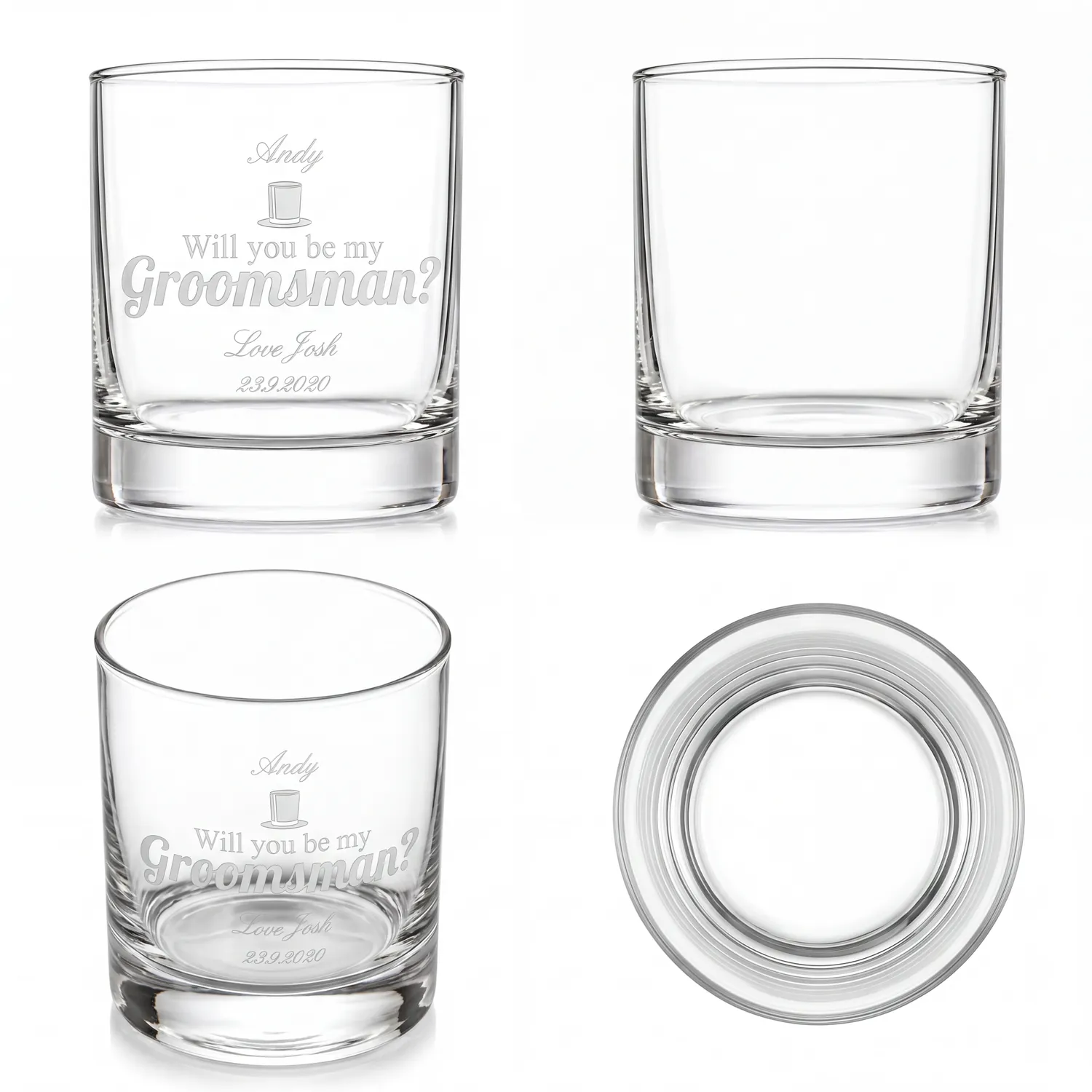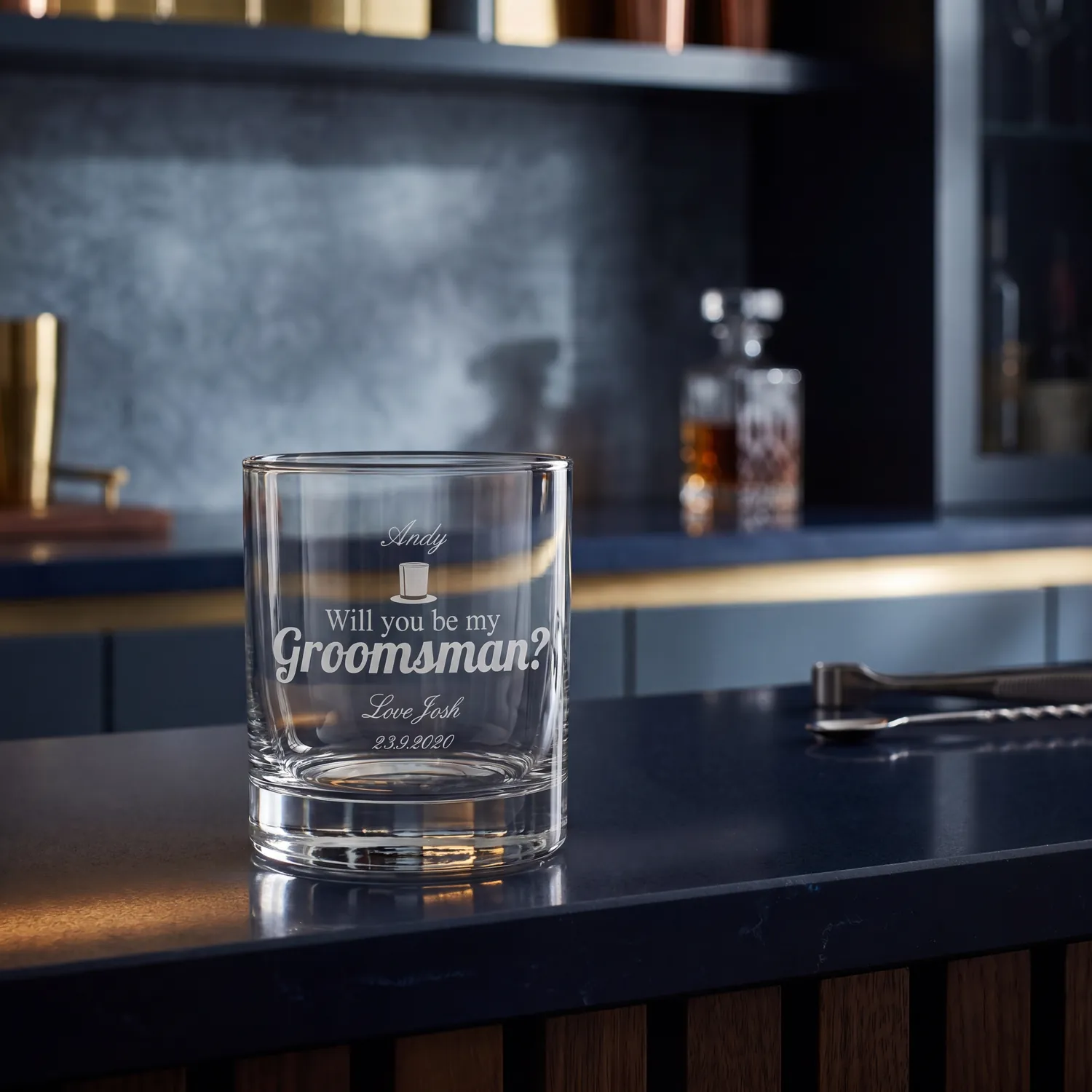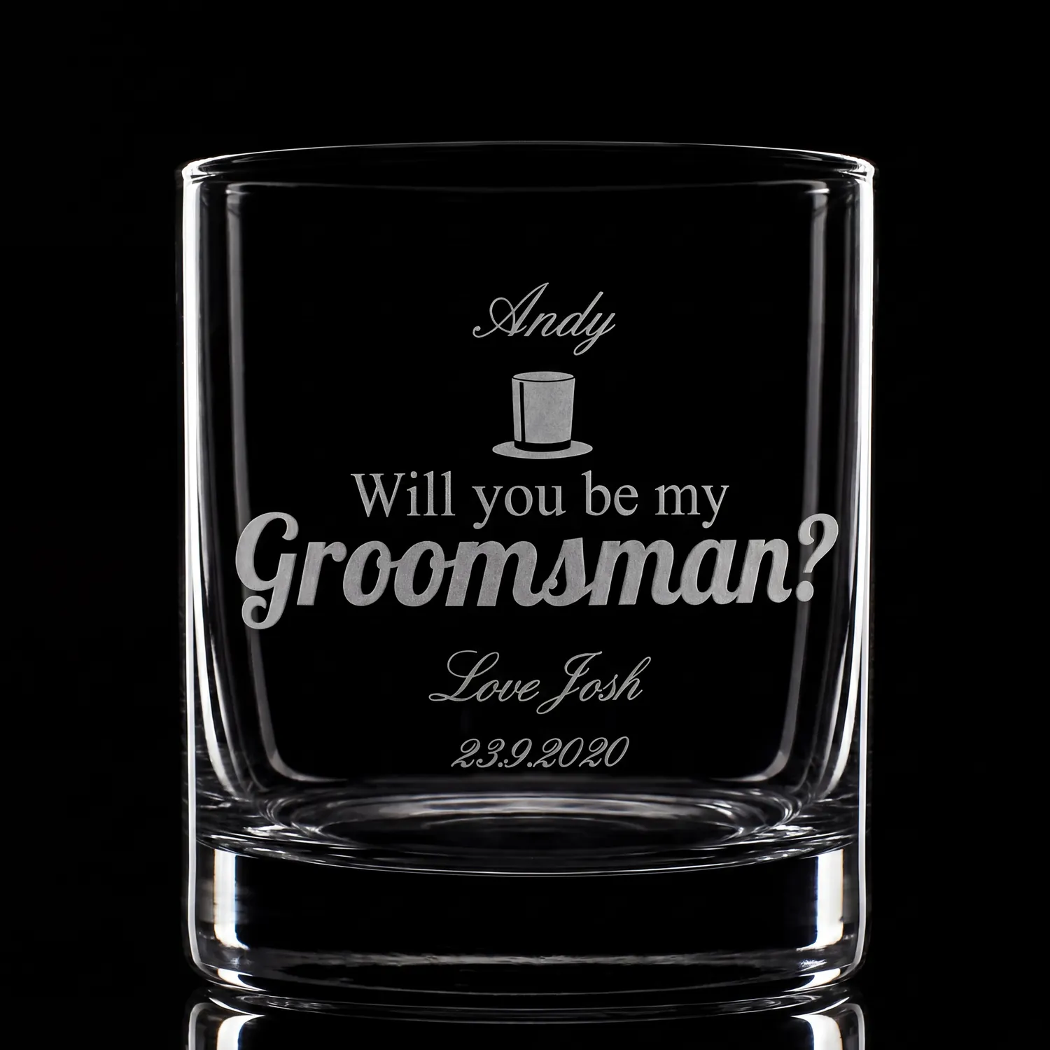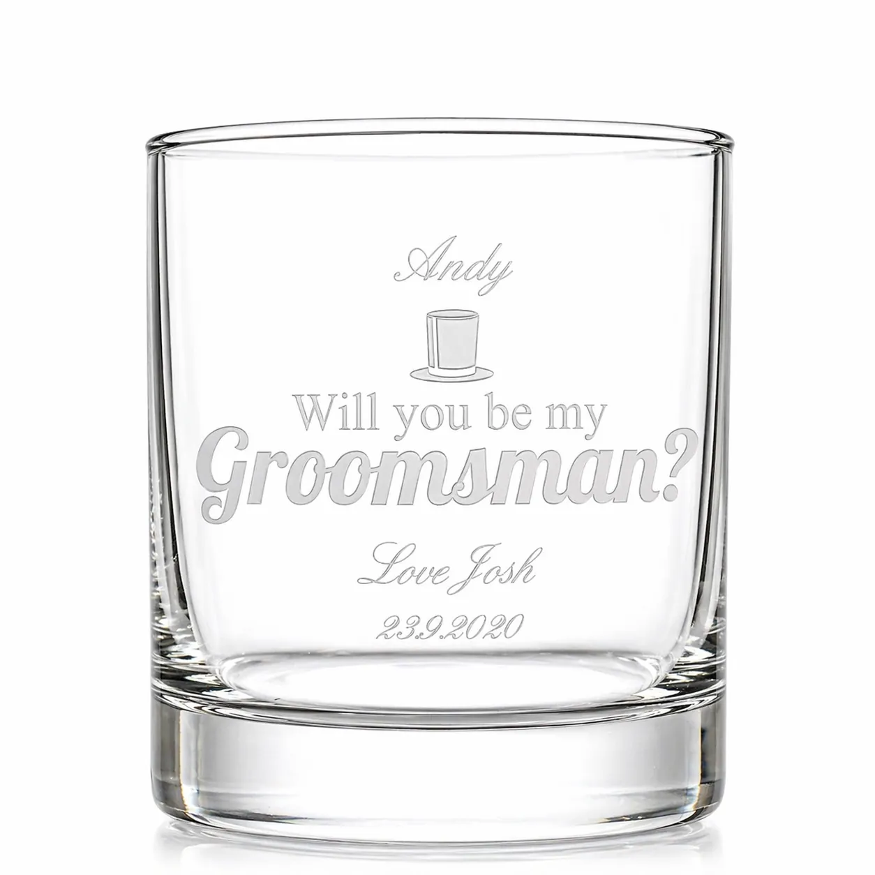 Ask one of your closest friends to join you as a groomsman on your big day with this unique personalised glass tumbler.