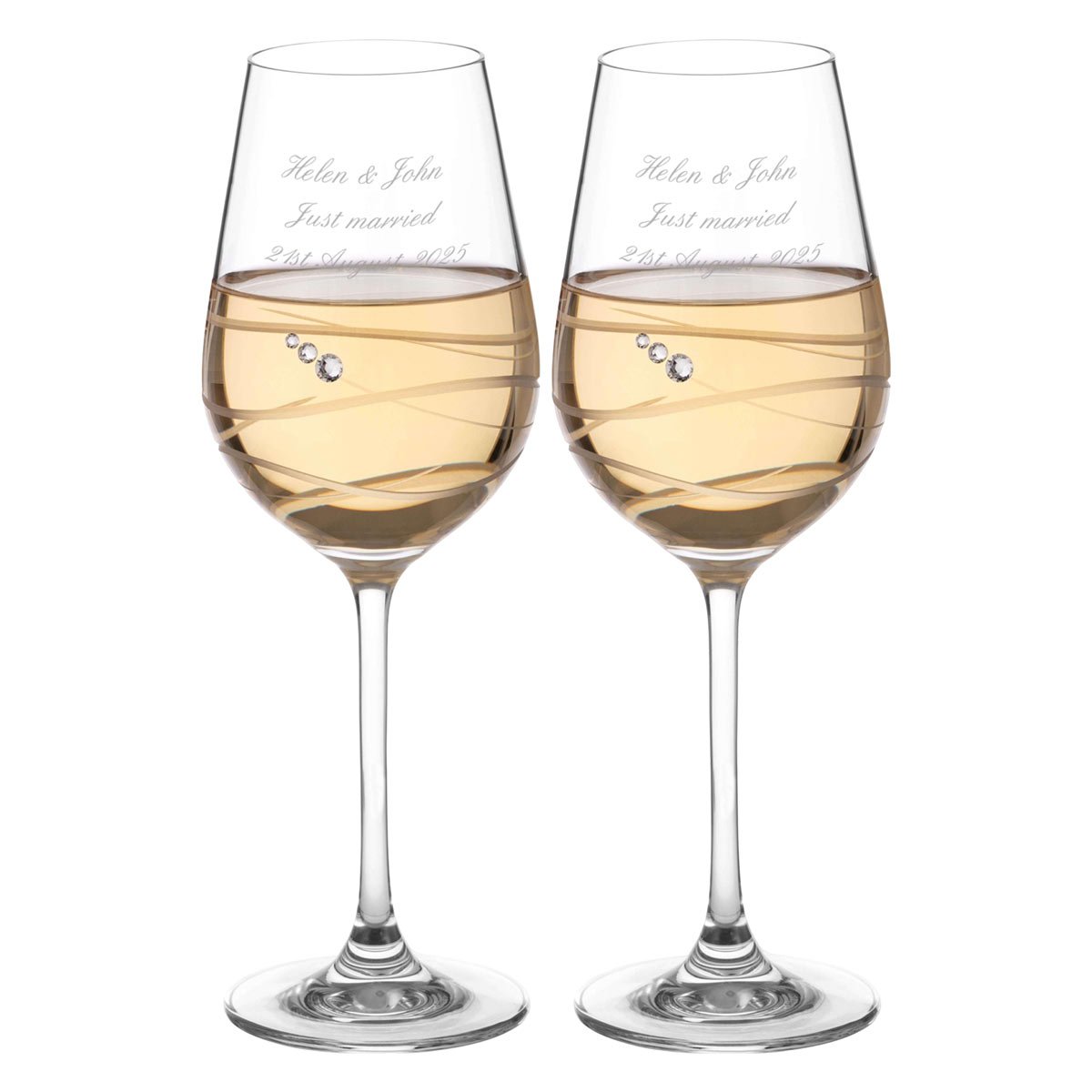 Personalised Venezia White Wine Glasses With Swarovski Crystals