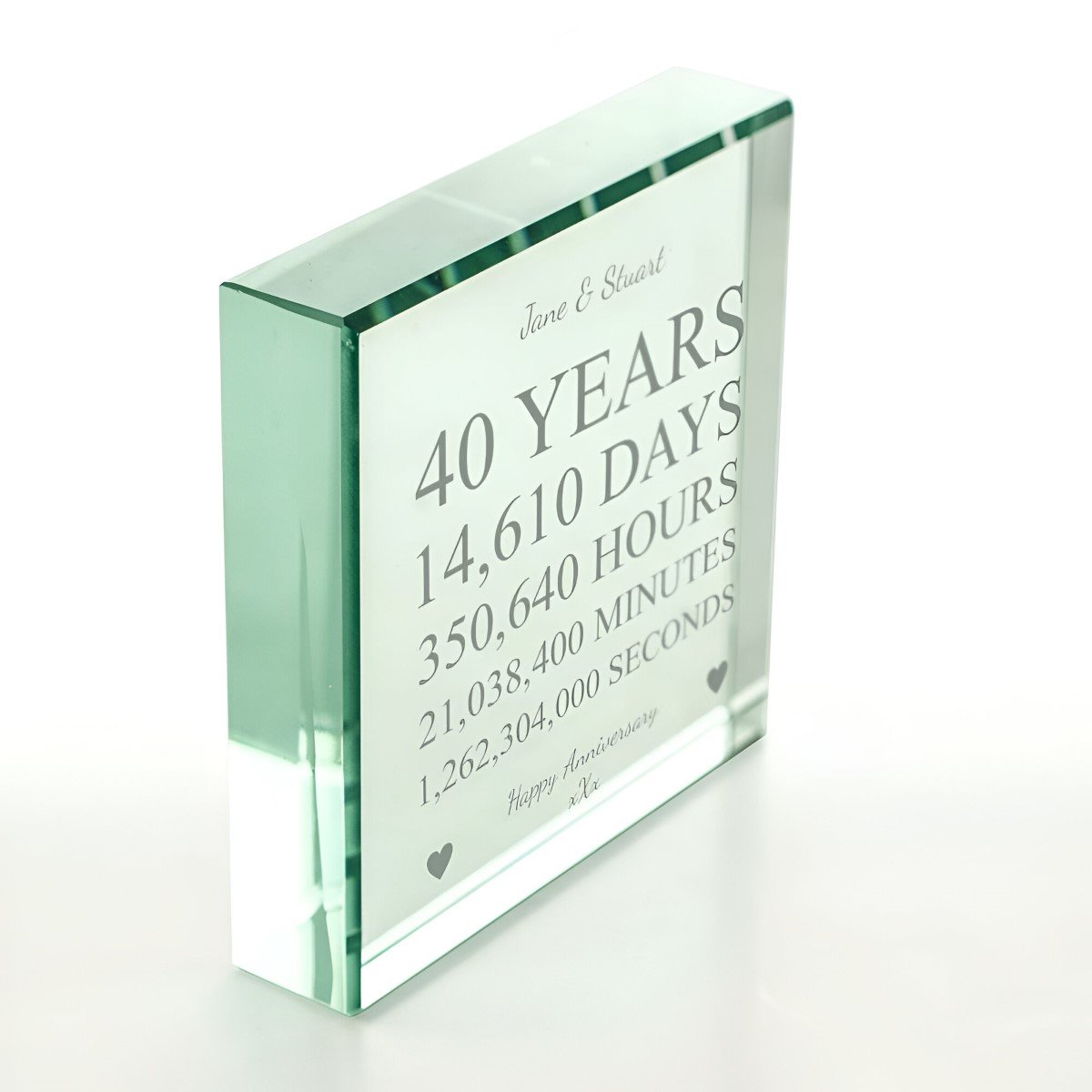 Cherish 40 incredible years of marriage with this personalised ruby anniversary glass token. This engraved keepsake gift is perfect for celebrating a 40th wedding anniversary and can be personalised with any message of your choice.