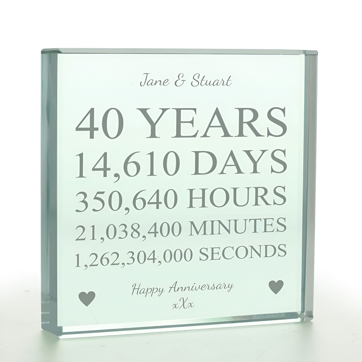 - Engraved with the days, hours and minutes of 40 years of marriage