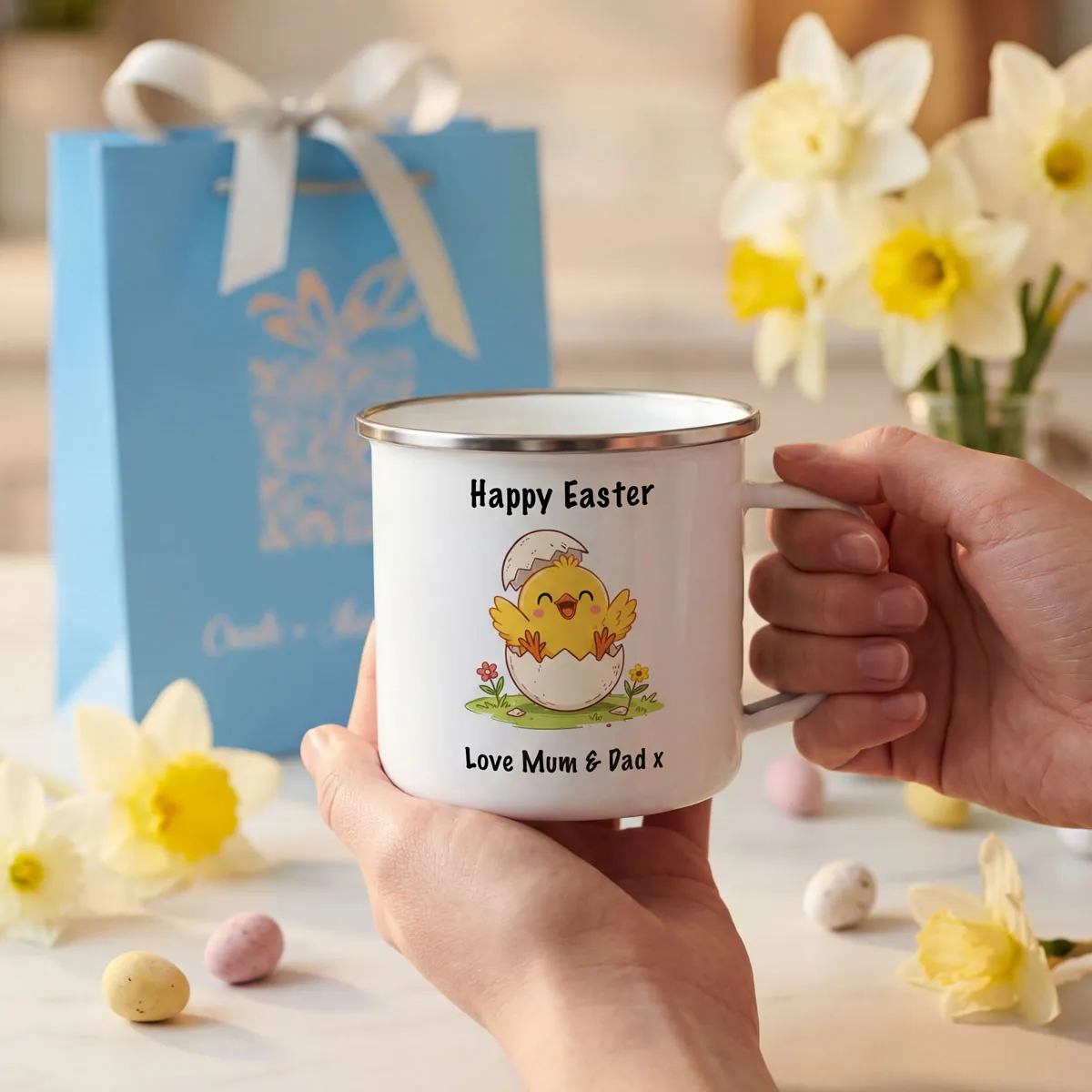 Celebrate Easter in style with our Personalised ‘Cracking Easter’ Enamel Mug — a fun and thoughtful gift perfect for springtime treats, Easter egg hunts, and cosy hot drinks.