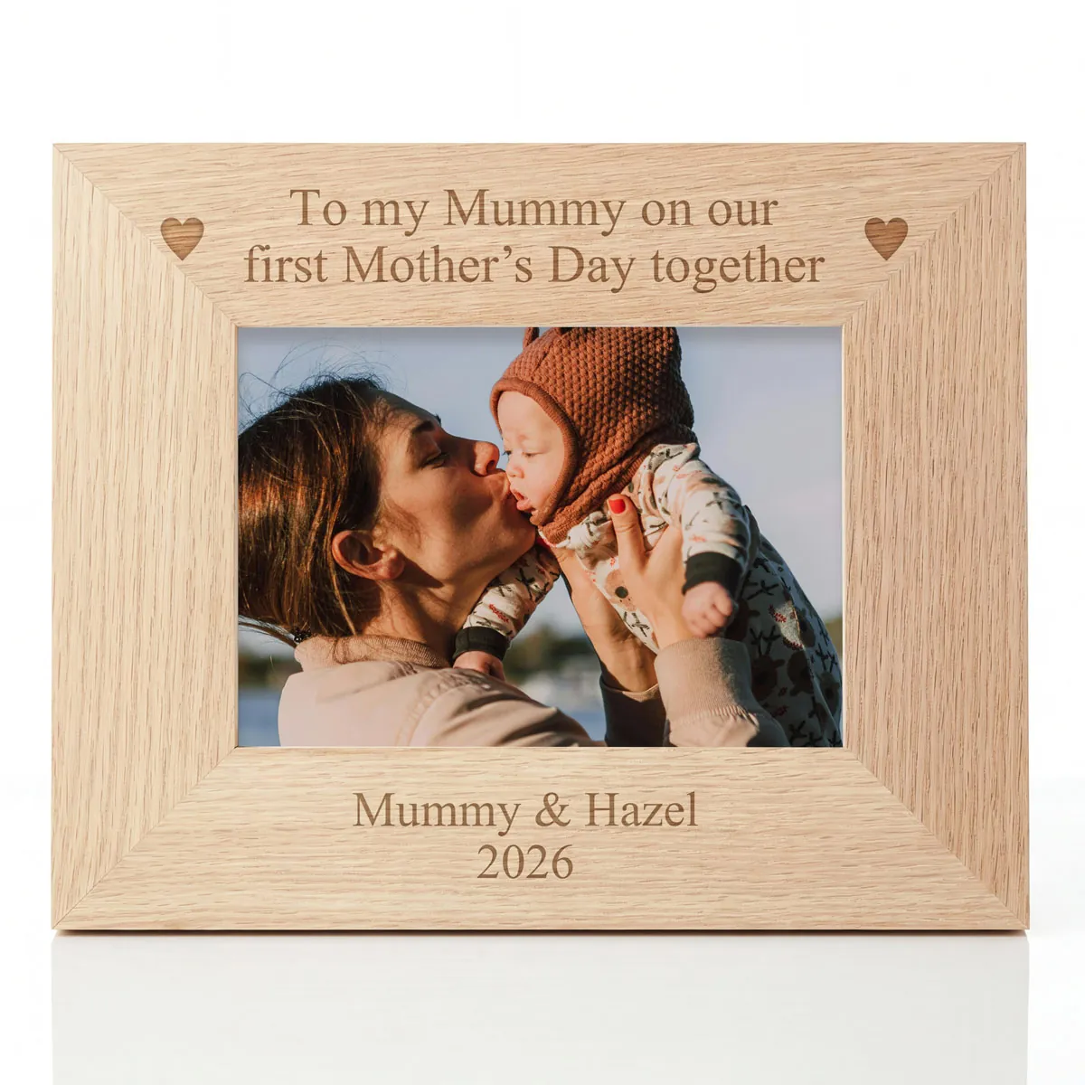 Every Mother’s Day is a special occasion, but none more so than your first as a mother to your newborn child. Cherish this beautiful moment forever with our personalised oak photo frame, designed to create a memory that will last a lifetime.