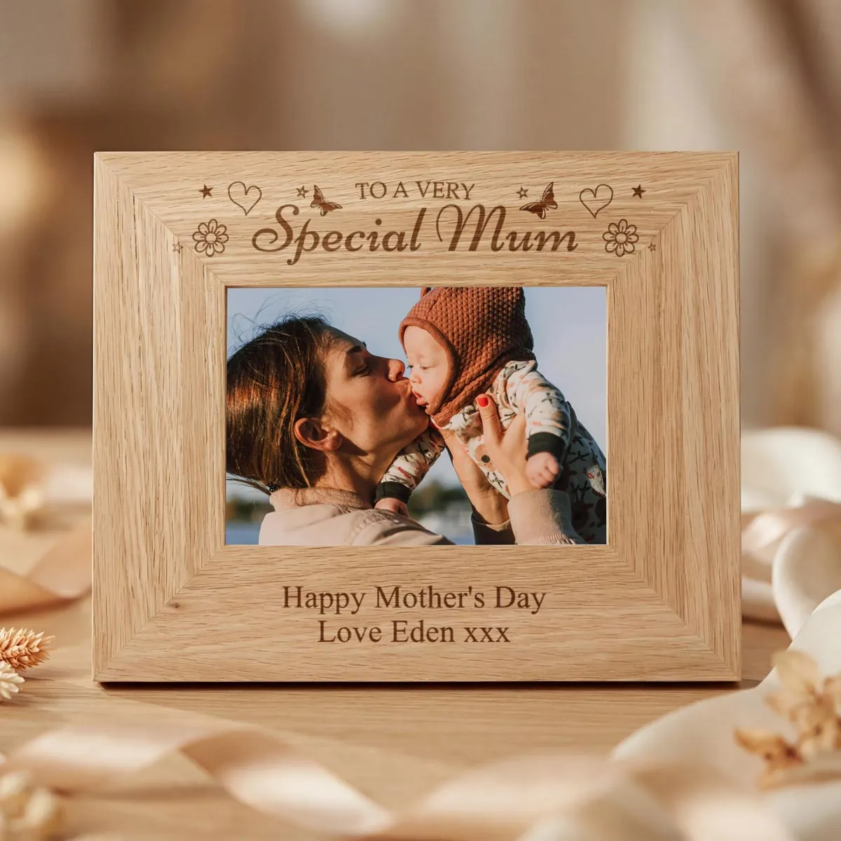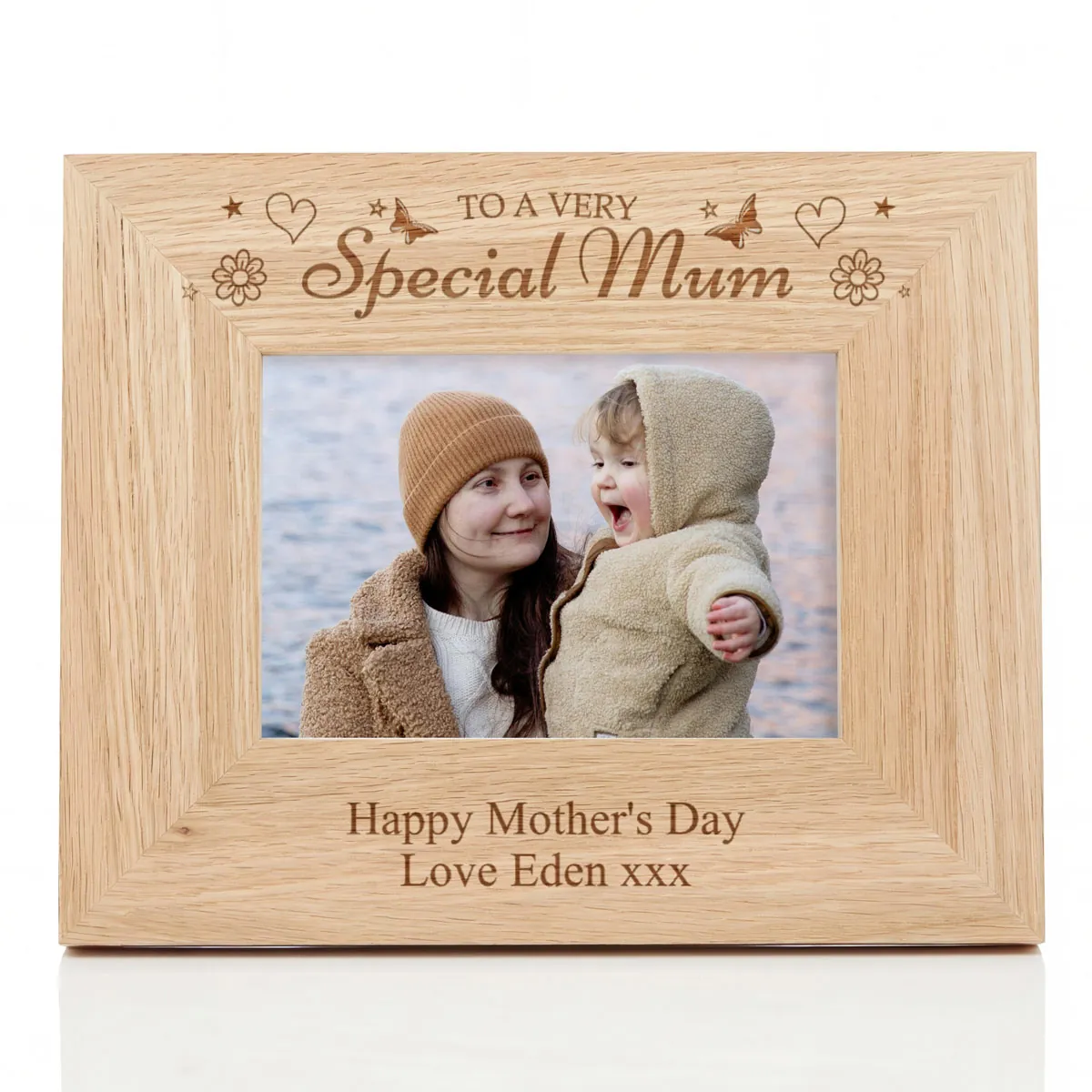 Treat Mum to this beautifully engraved personalised oak frame to remind her just how much she means to you. This is an ideal gift for Mother's Day.