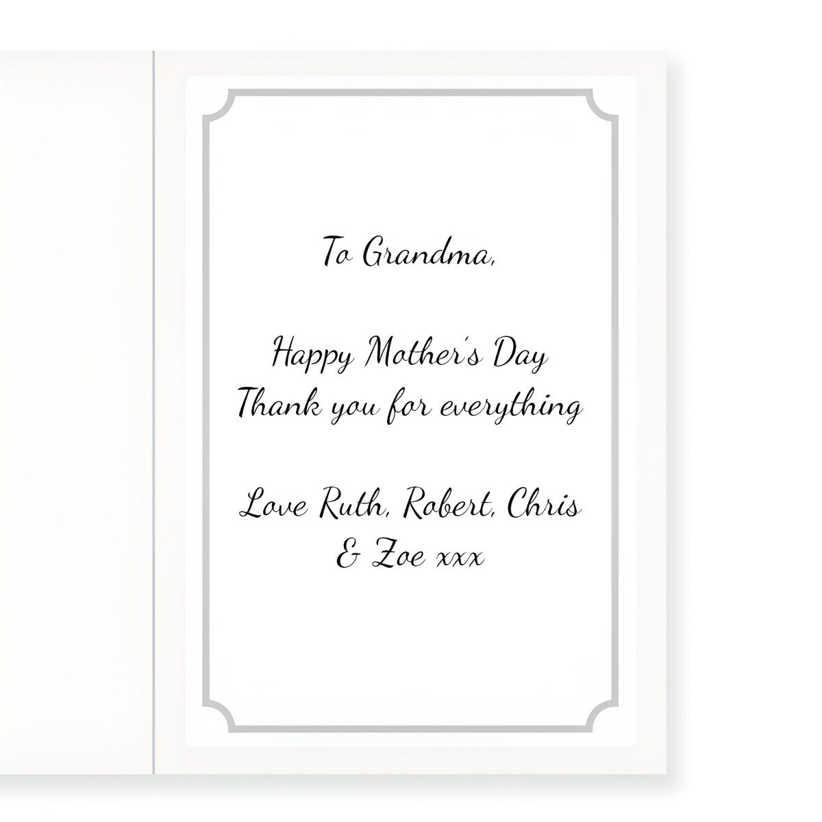 Please note:This will be printed inside a border onto a high-quality sticky paper that is carefully placed inside the card.