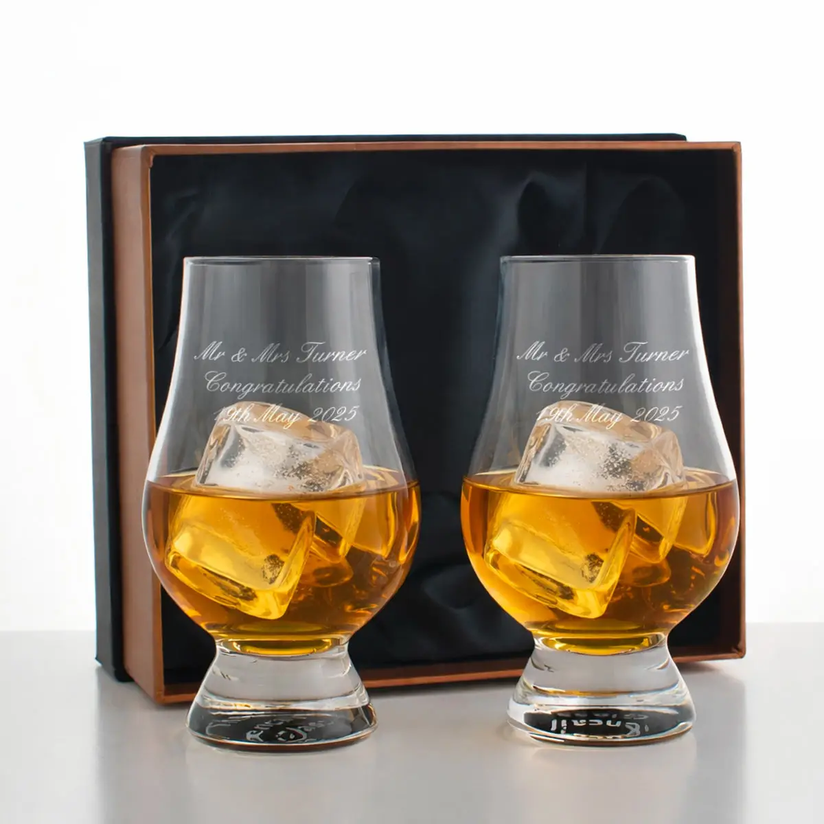 Share a dram in style with the Personalised Glencairn Tasting Set. This is not just a glass; it is the industry standard, used by master blenders and connoisseurs worldwide to unlock the full character of a single malt. Now available as a matching pair, it is the ultimate gift for couples, best friends, or business partners.