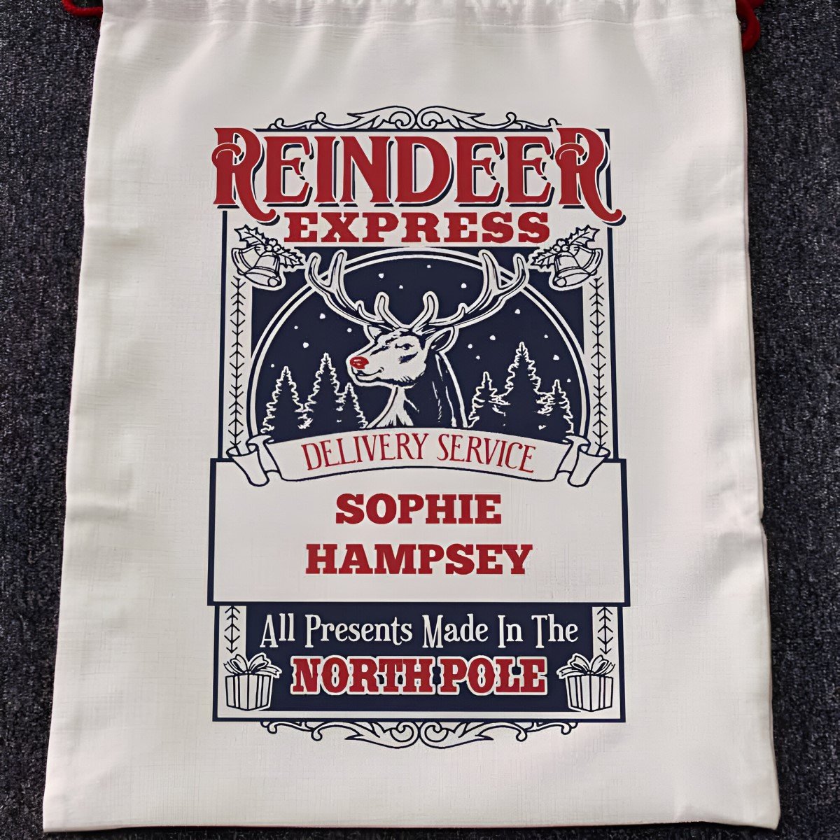 - This sack can be personalised with any name.