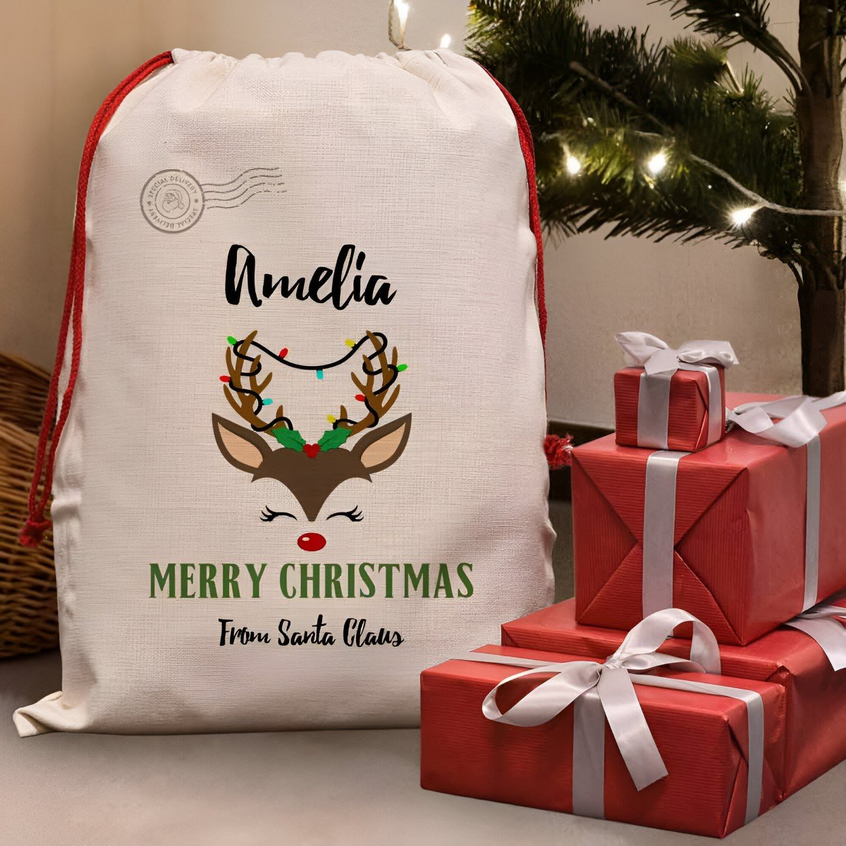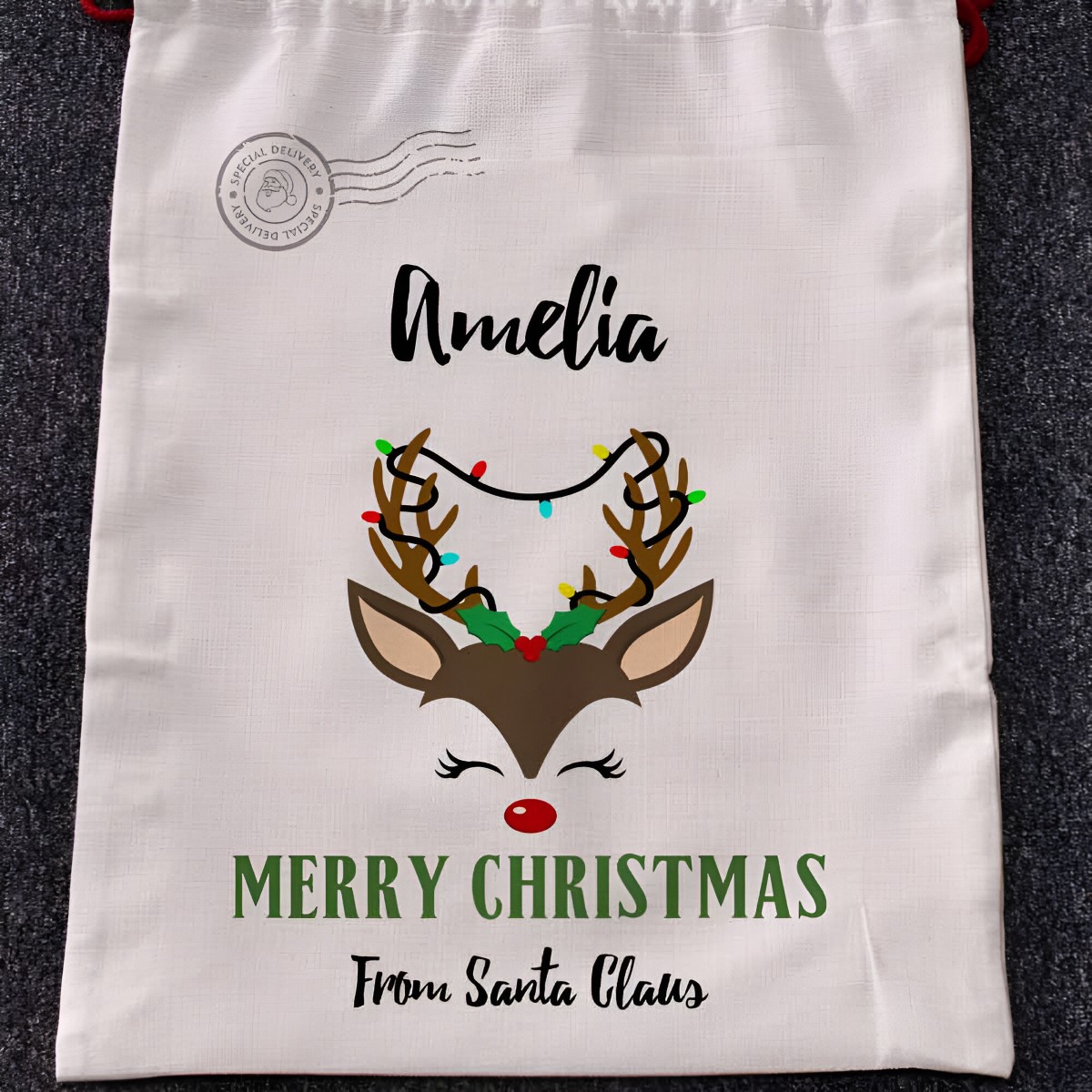 This adorable reindeer Santa sack can be personalised with any name and message making it a wonderful way for the kids to open their presents on Christmas morning.