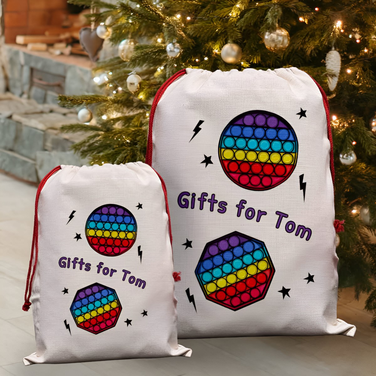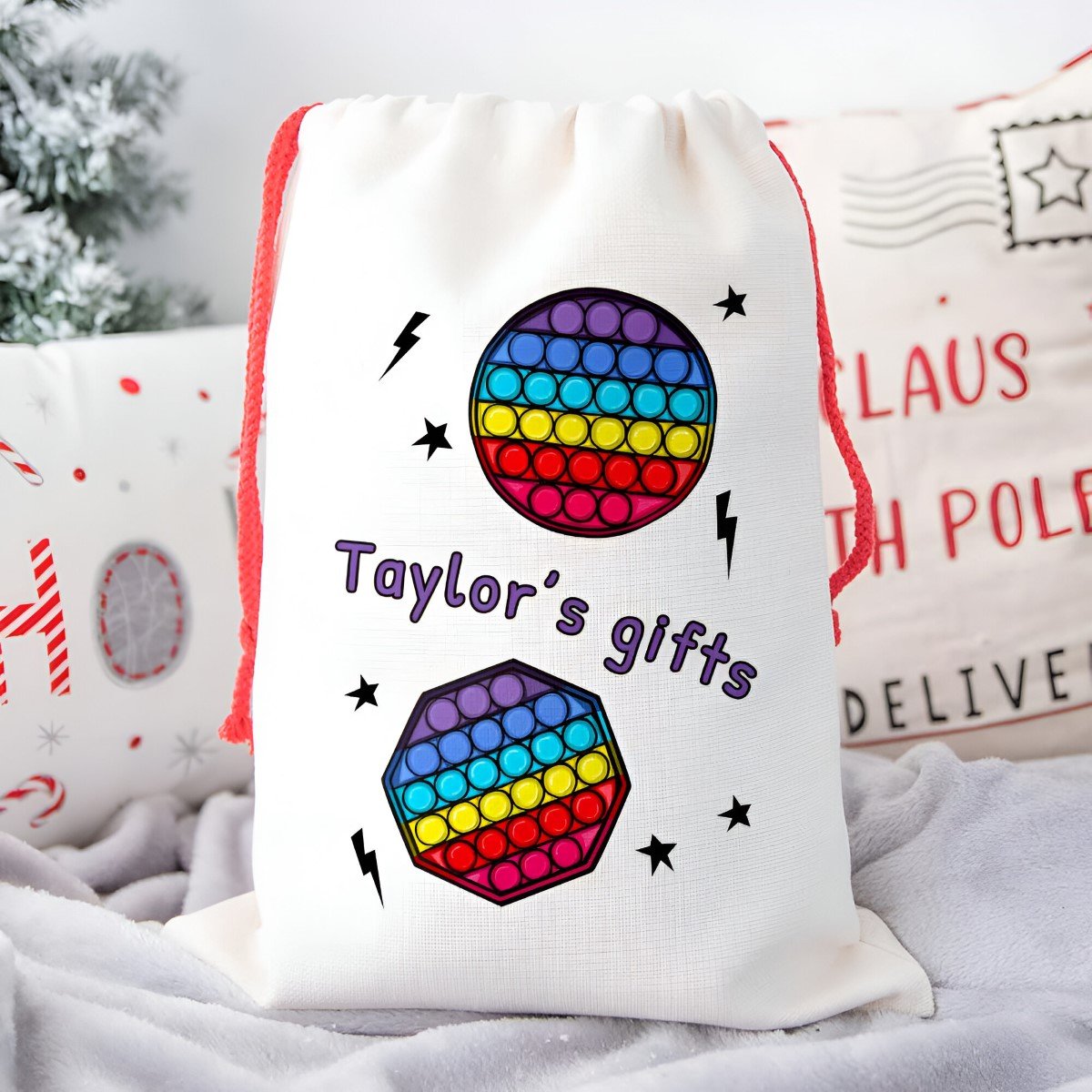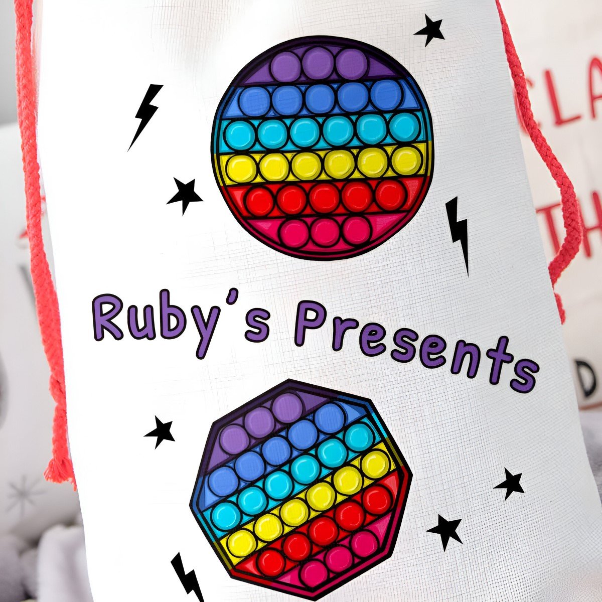 Present your Children's gifts in style this Christmas with this bold and bright Gift Bag inspired by the popular popping stress relief toy.