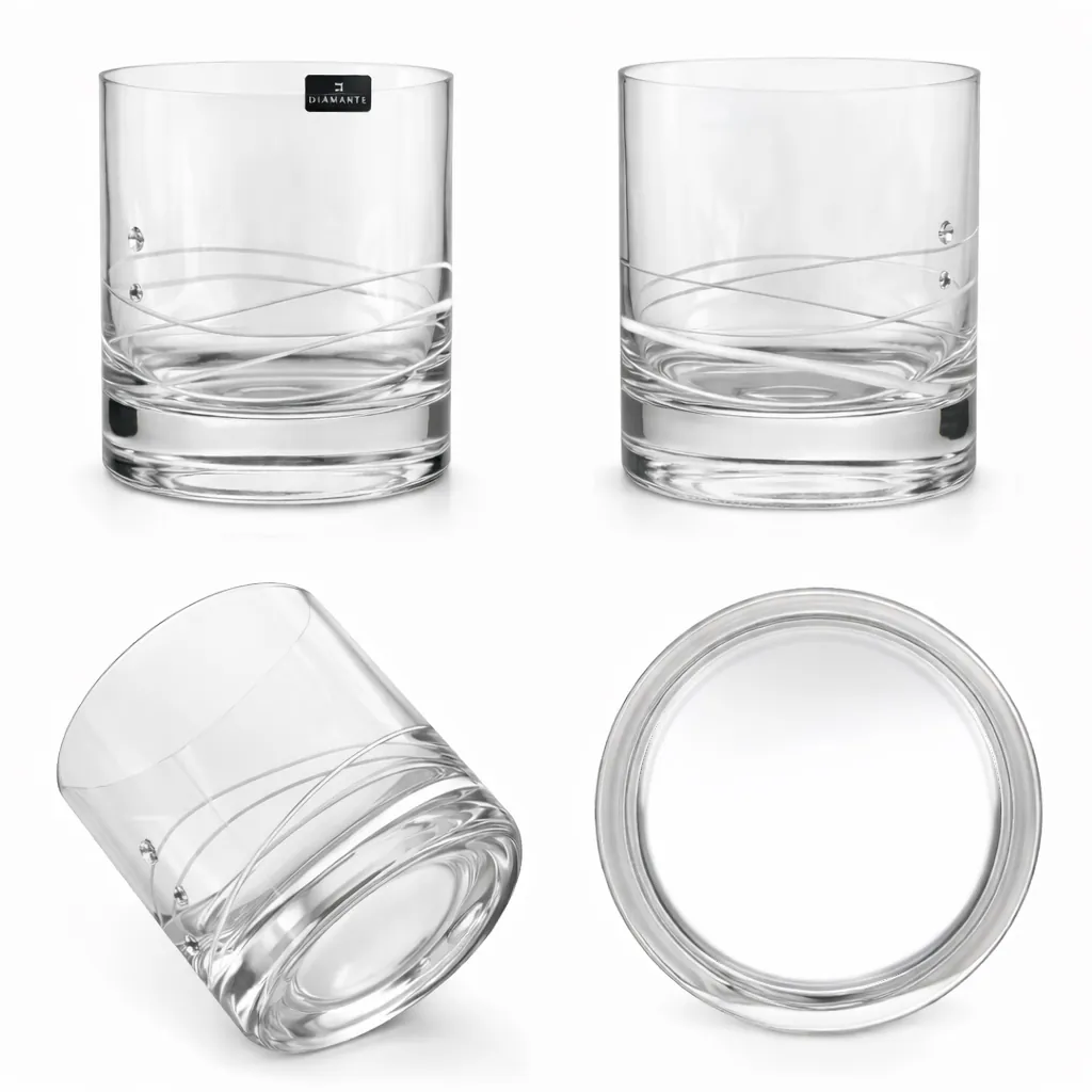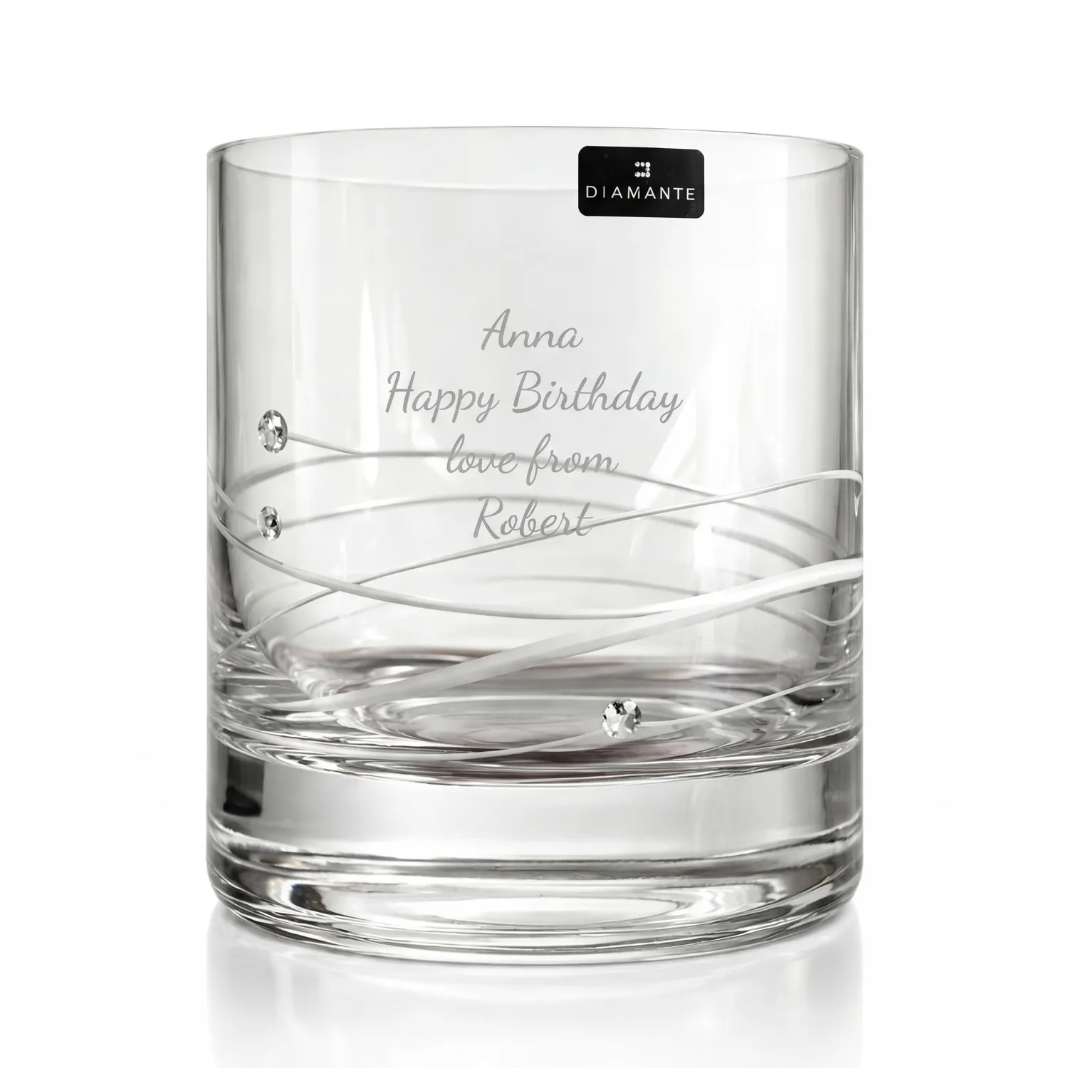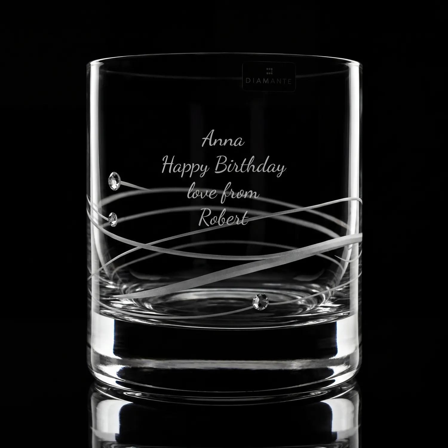 The glasses are made from fine crystal and have a deep cut wave pattern around the glass which joins up to 3 individual Swarovski crystal beads.