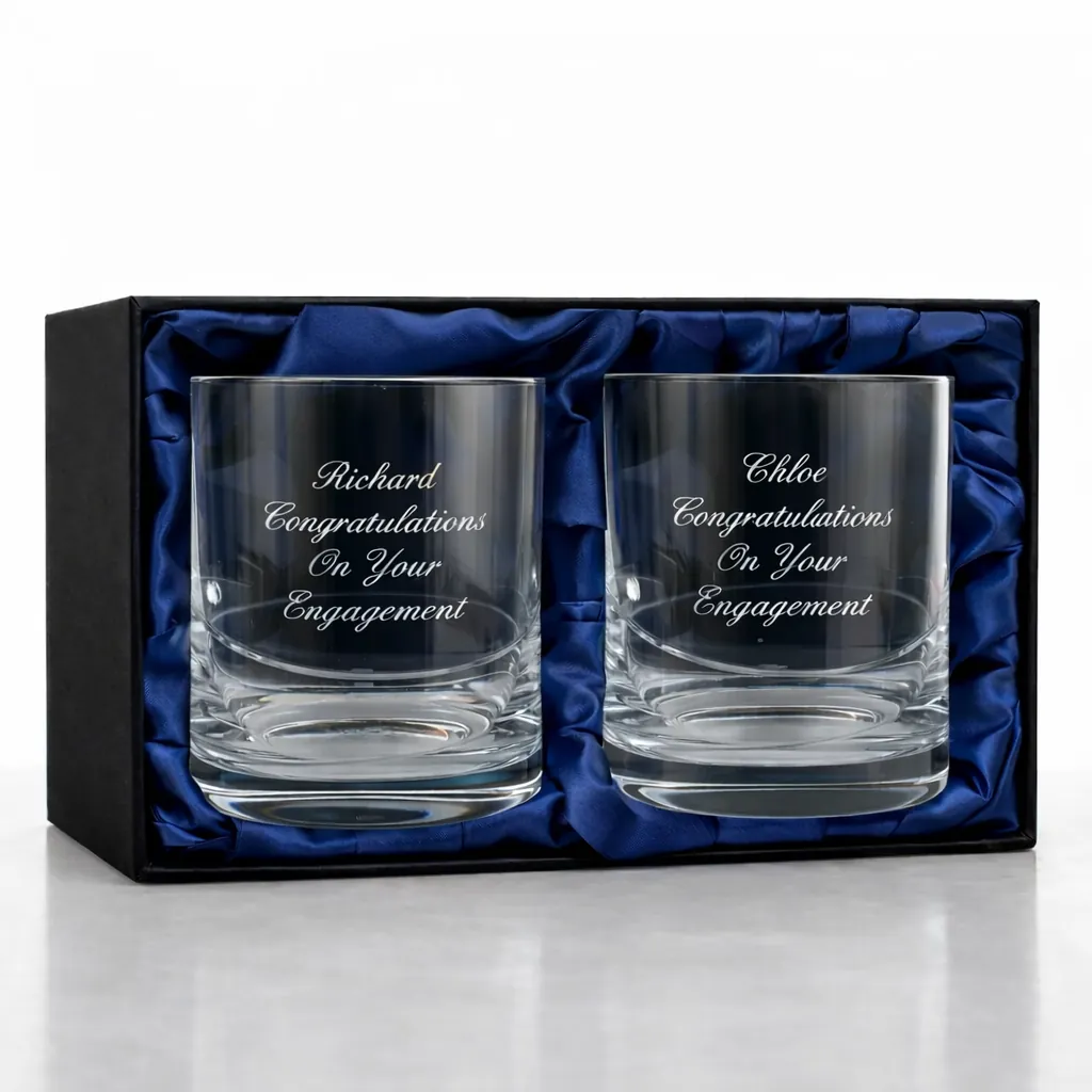 We professionally engrave each whisky glass with the same message of your choice in a variety of engraving fonts.