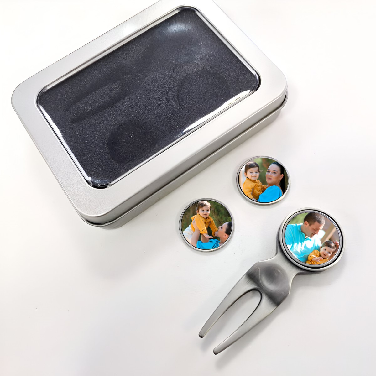 This personalised golf ball marker set is a great gift for birthdays, weddings, anniversaries or Father's Day. Treat a golf-loving loved one to this unique photo gift idea.