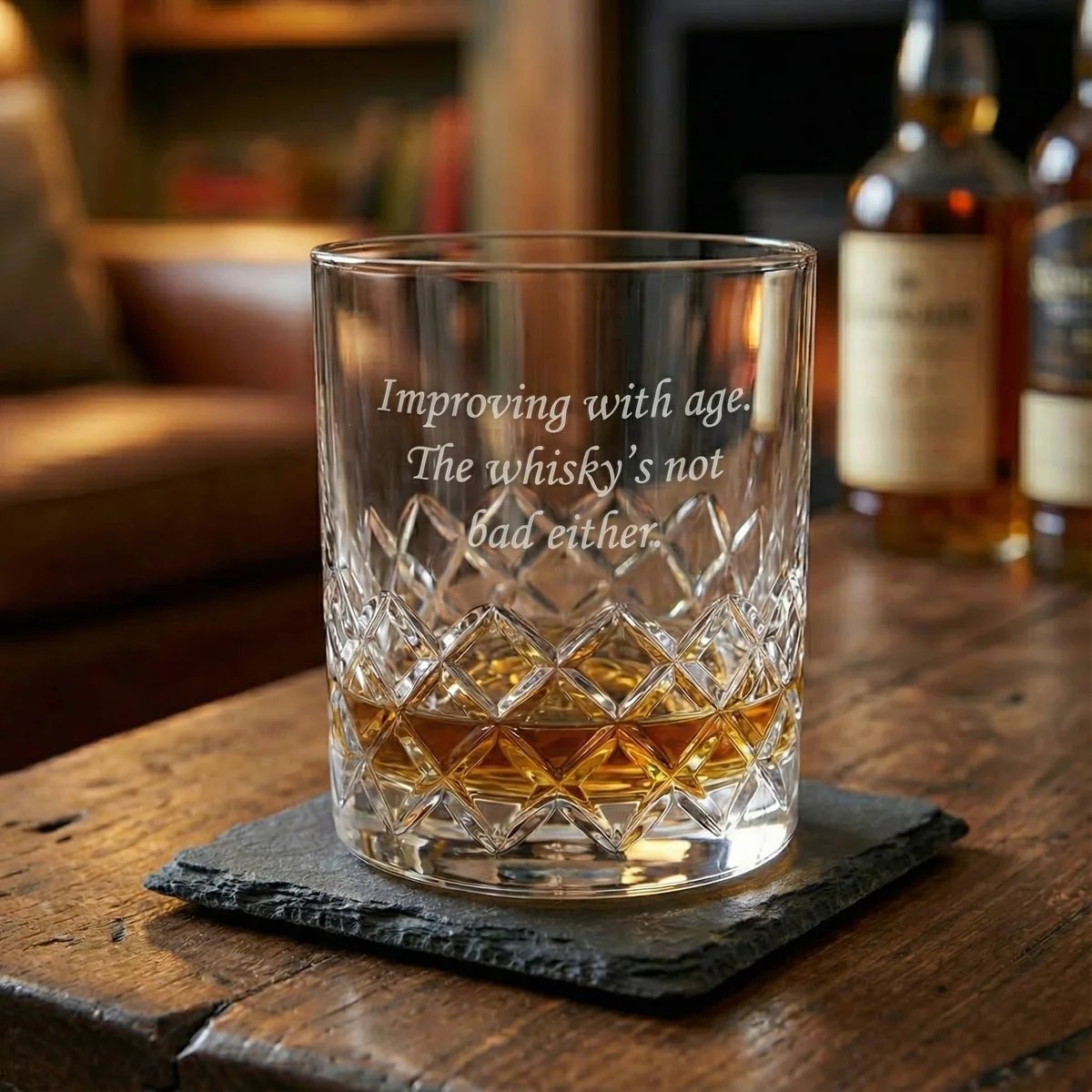 Because of its generous clear styling, the Grosvenor is the ultimate canvas for personalisation. Engrave a name, a significant date, or a heartfelt dedication (up to 5 lines) with absolute clarity. Your message will float elegantly above the diamond-cut base, ensuring it is the first thing they see when they pour their favourite dram.