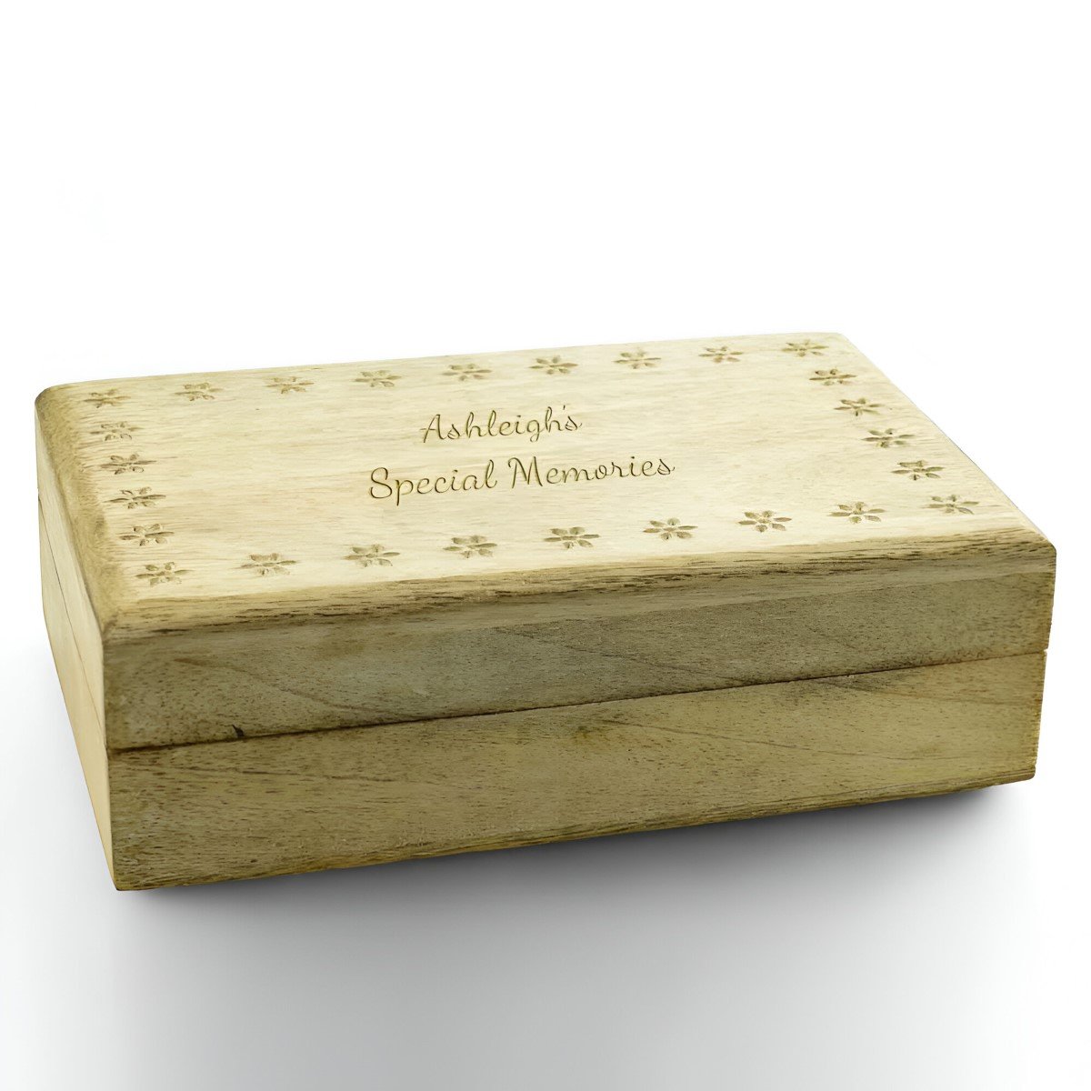 This box has a subtle flower design carved around the edge of the lid and can be personalised with any message of your choice.