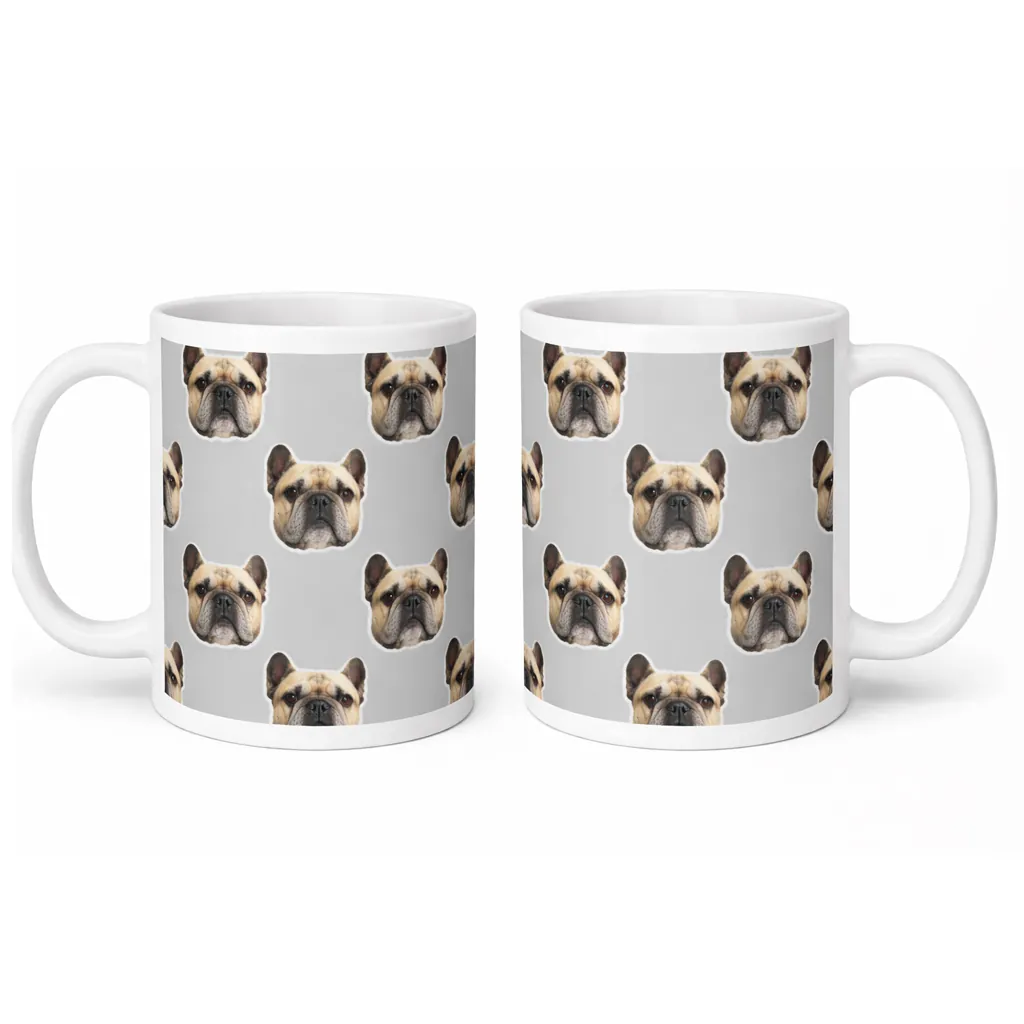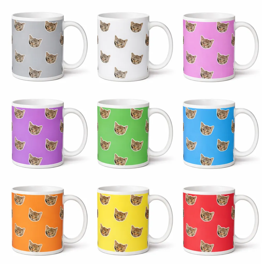 Start your day with a smile and your favourite furry face! Our Custom Pet Face Mug transforms your pet’s photo into a fun, repeating pattern that wraps around a high-quality ceramic mug. Whether it’s your dog’s goofy grin, your cat’s majestic stare, or any beloved pet, this mug turns everyday coffee into a personal moment with your best friend.