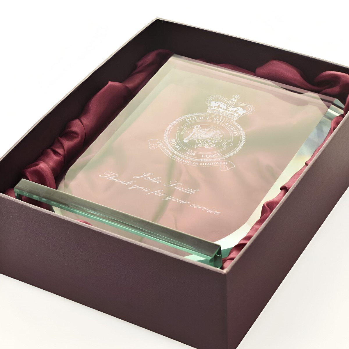 This shield-shaped award comes presented in a burgundy-coloured presentation box making it easy to give to your recipients. You can have your logo laser engraved along with any message of your choice making it perfect for any special event.