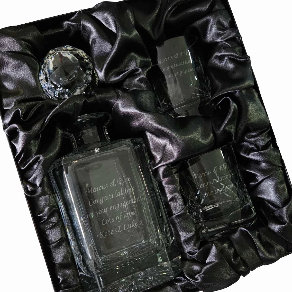 We can engrave any message or logo onto both the decanter and the glasses, making this the perfect personalised gift for whisky lovers.
