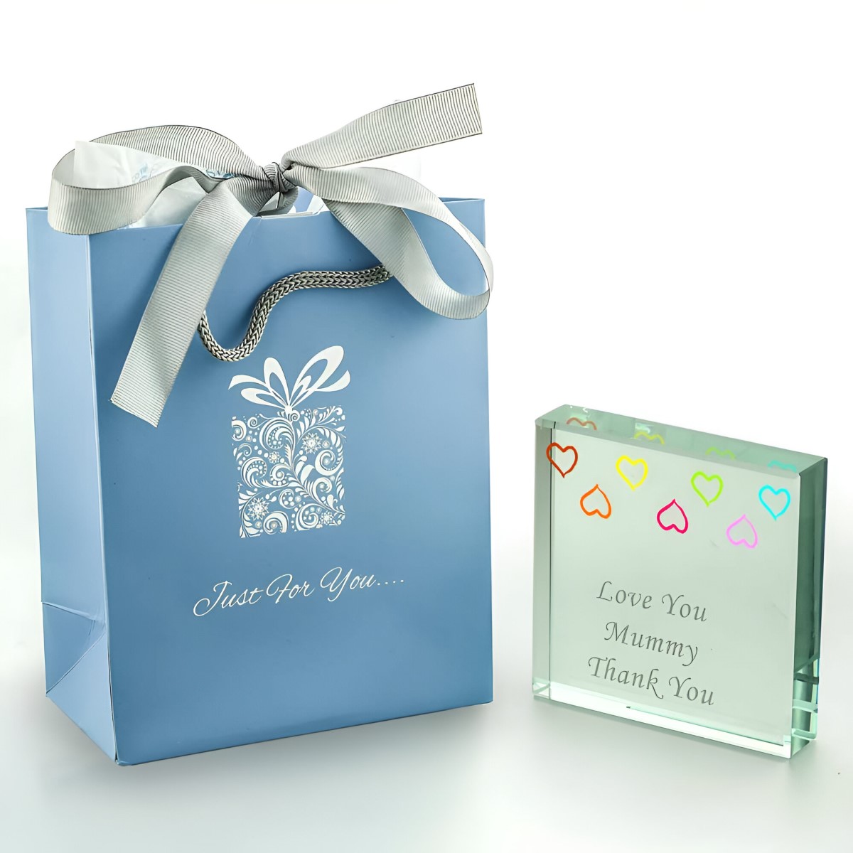 Your glass token will be safely wrapped in our soft tissue and placed into one of our luxury blue gift bags.
