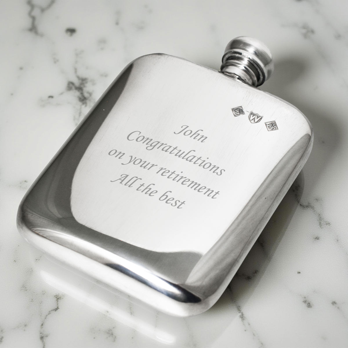 This handmade personalised hip flask is made from high-quality pewter, making this a wonderful gift for special occasions.