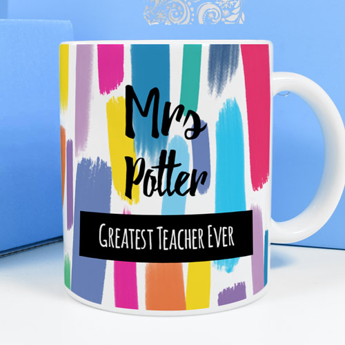A colourful addition to any classroom desk, this mug features our brushstroke design with space to add your teacher's name. It is a fantastic gift idea at the end of the term and is a great way for parents, students or even from the whole class to show their appreciation.