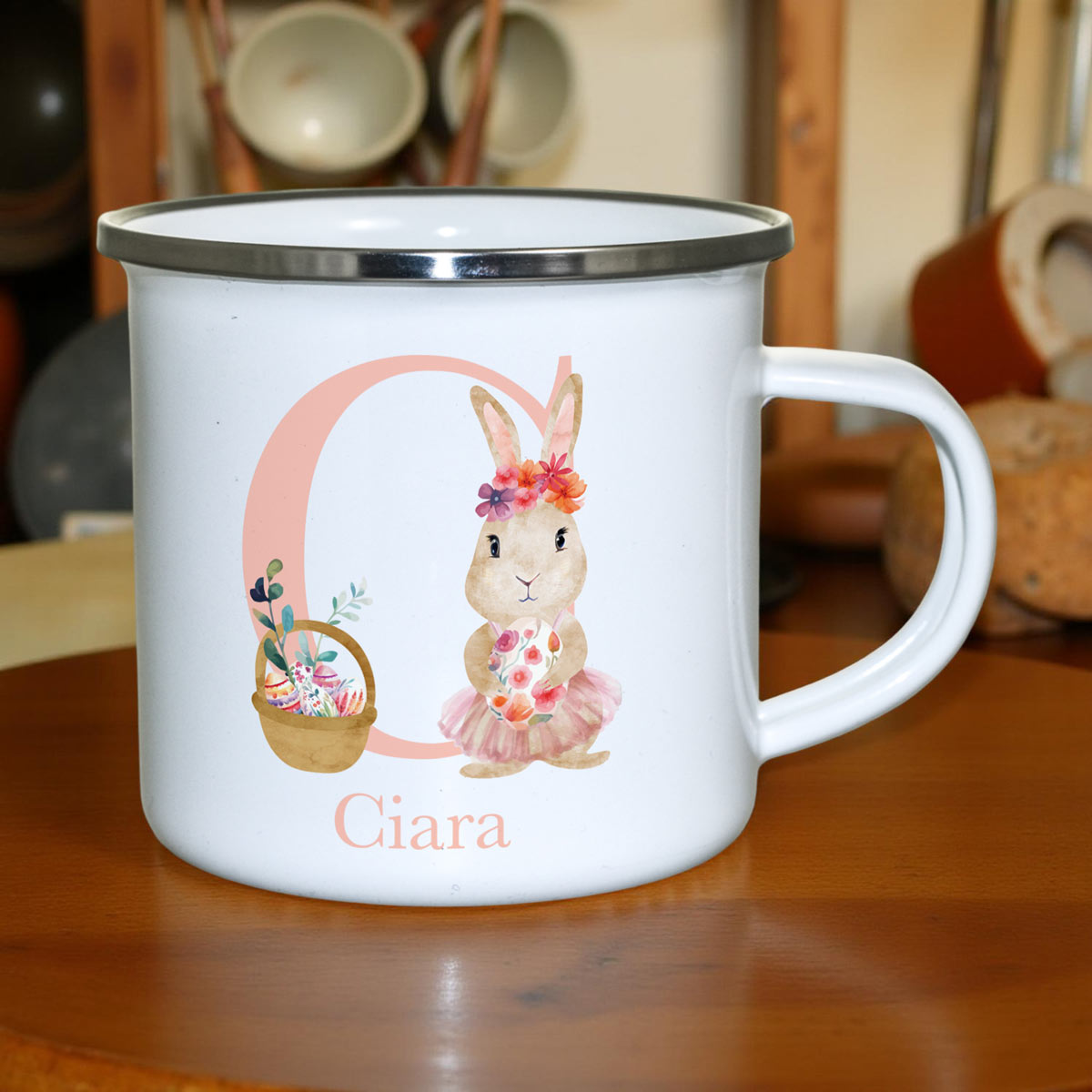 Personalised Easter Bunny Initial Enamel Mug For Kids