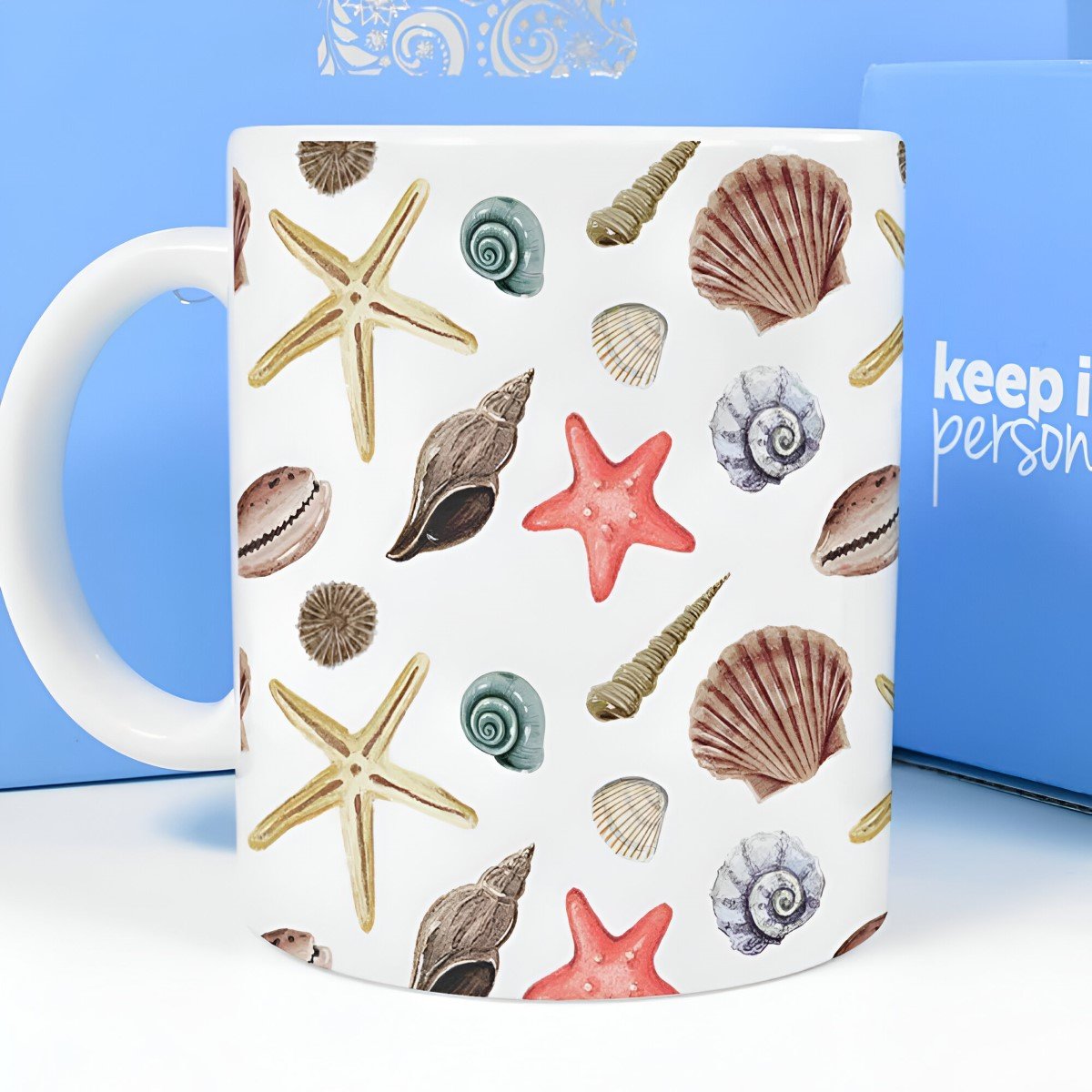 This personalised mug features a visually soothing design for lovers of sun, sand & sea to enjoy their favourite brew.