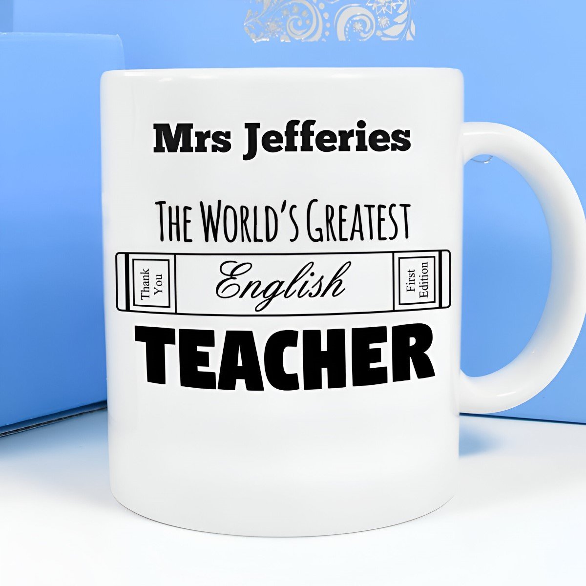 Thank your English teacher for everything they have done with their very own personalised mug. If they have helped with anything from speaking and listening to creative writing then thank them with this lovely mug.