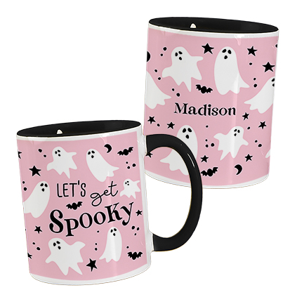 Our sweet pink and black spooky personalised mug is the perfect gift for you or a friend this Halloween!