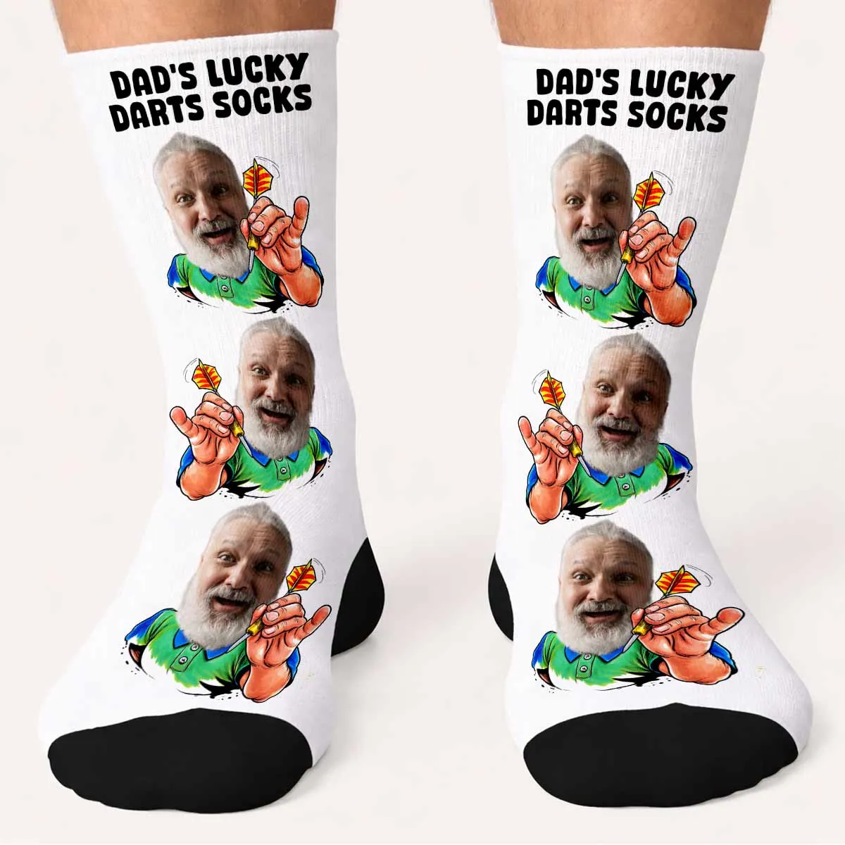 Upload any photo and we’ll turn it into a bold, eye-catching design Fun darts theme – complete with “Dad’s Lucky Darts Socks” for that winning touch.
