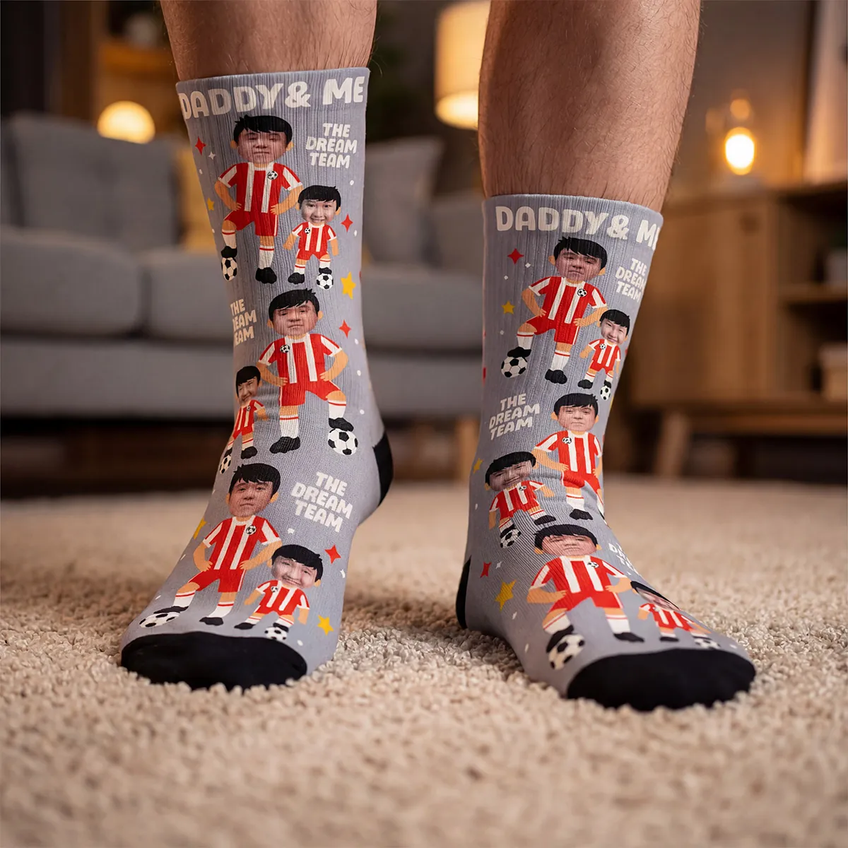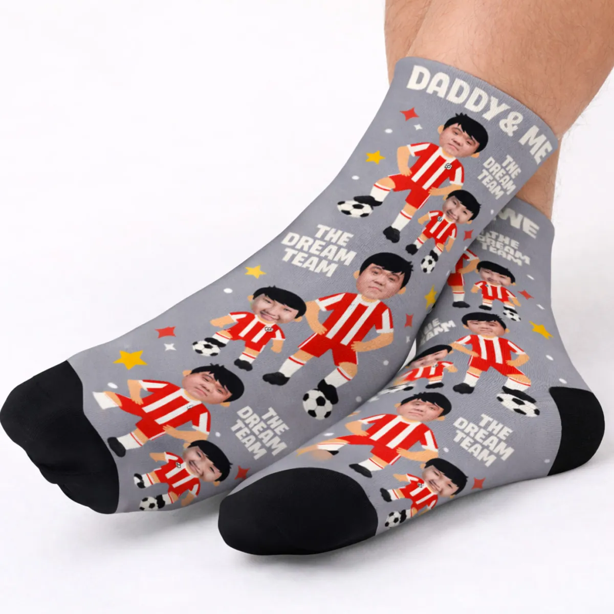 Turn your favourite moments into a one-of-a-kind gift by adding two different face photos, perfect for a dad and child duo - and watch them come to life as playful football characters on every step. Whether it’s for Father’s Day, birthdays, or just because, these socks are guaranteed to score big smiles.