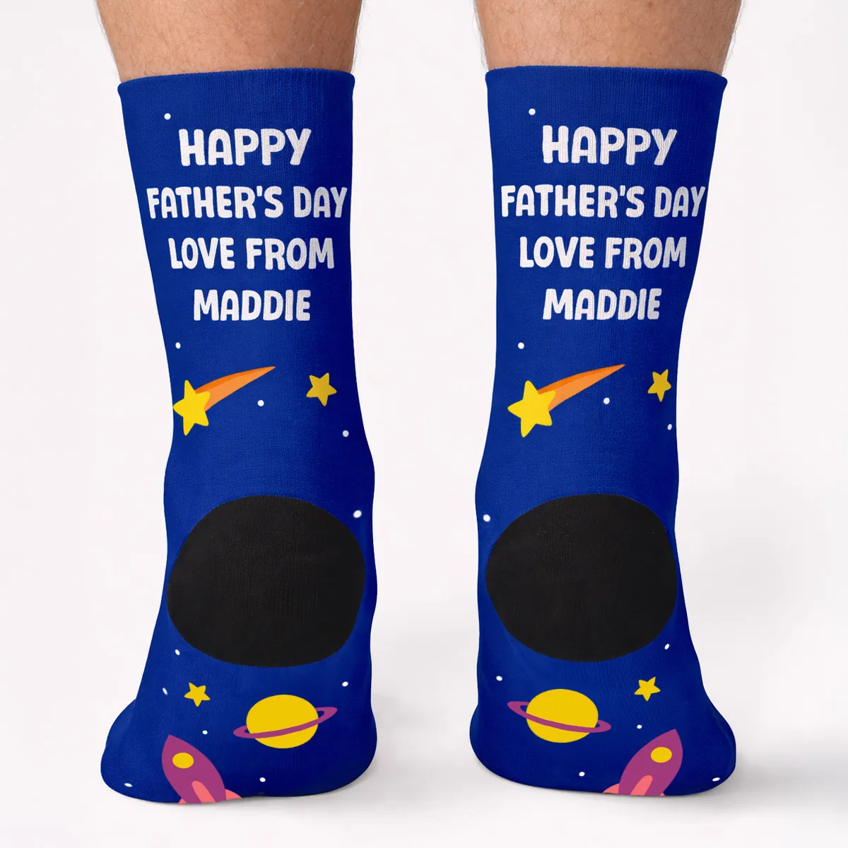 Customised with your photos – add faces of the kids, family, or even the dog for a gift that’s uniquely his. Features a fun “Love You to the Moon and Back” design. You can even personalise the back of the socks with a sweet message.
